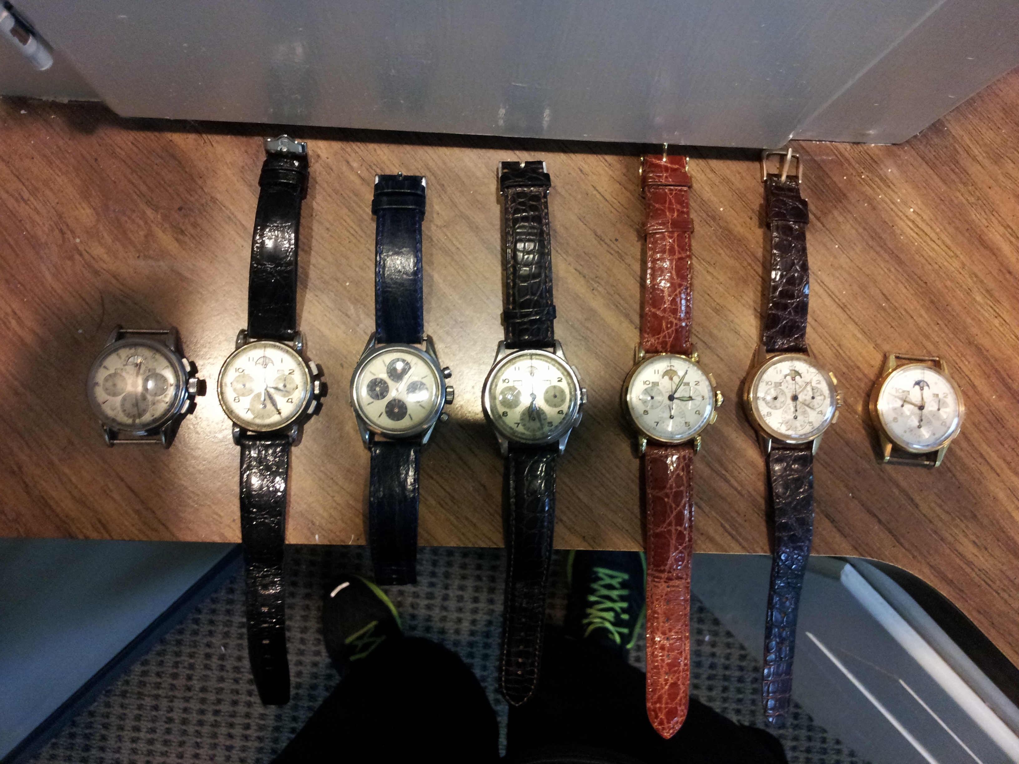 Posts 1,195 Likes 1,979 rolokr ·Apr 28, 2014 The watches all have original dials. Two of the gold ones are 18k and the other one is 14k. One of the stainless steel ones has round pushers, the rest all have square pushers.