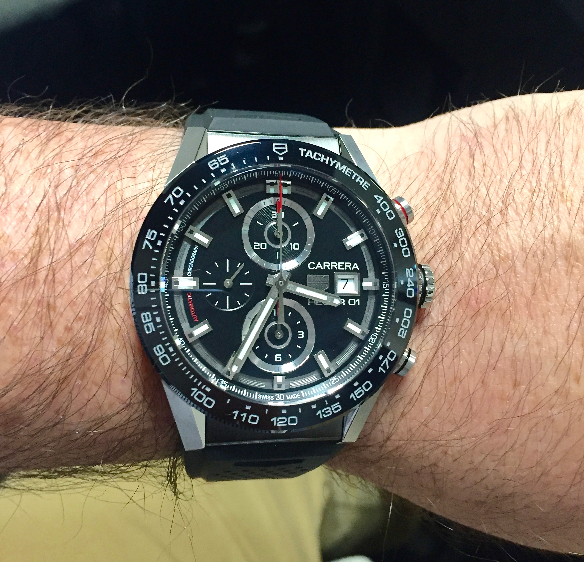 Here's the black-dial version of the Carrera Heuer-01 43mm I posted yesterday. This one is a winner