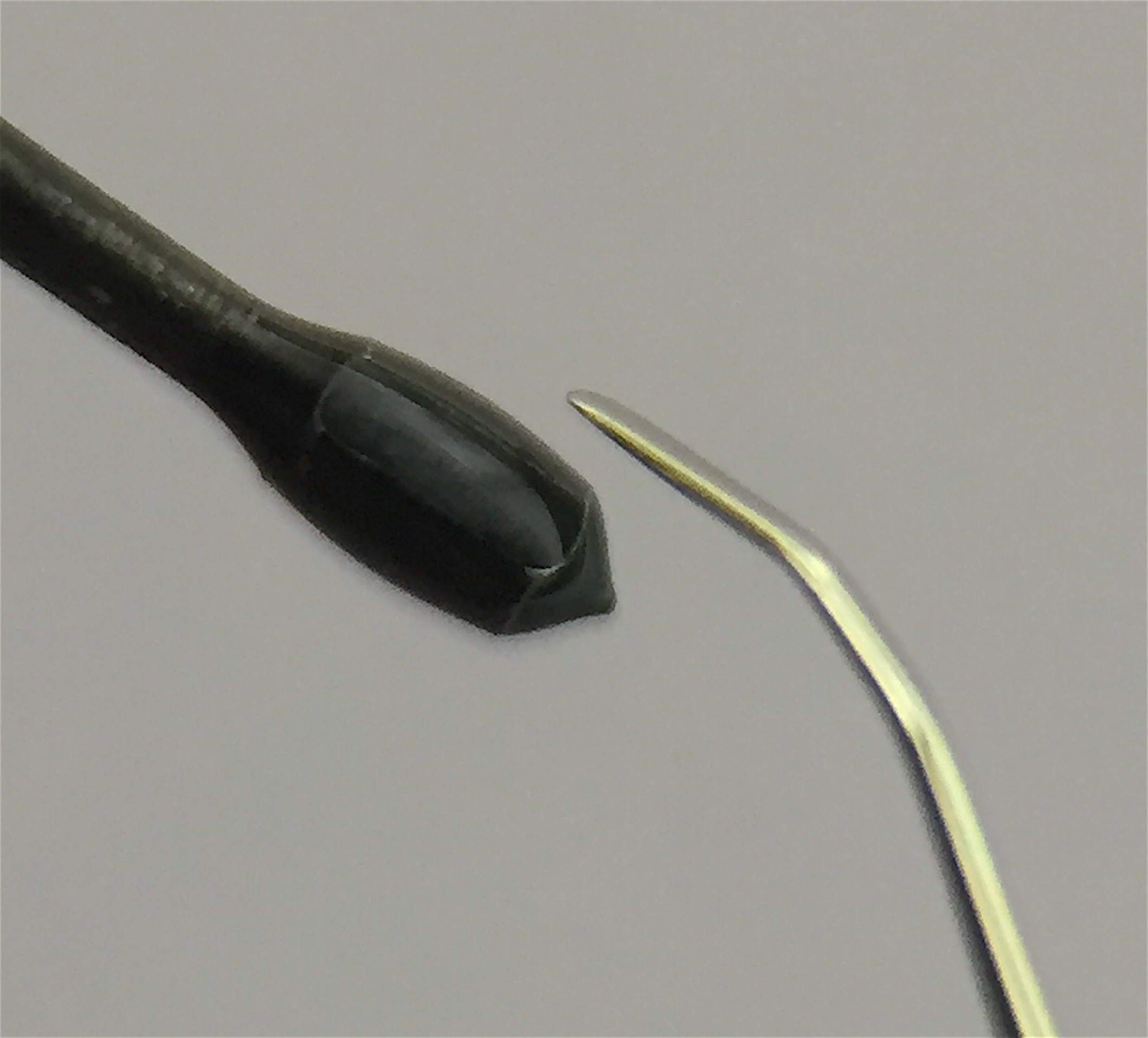 Not long ago I responded to someone on another forum who said they tried these and hated them. They went on to say they could barely pick up any oil with these and the oil they did pick up didn’t seem to transfer well. After some conversation it appeared that the user wanted to be able to pick up a large (for watchmaking) drop of oil and then “wipe off the excess” on the side of their oil cup. As you can probably guess, there’s no reason to do things this way when you can pick up the correct amount of oil with these right off the bat. The problem of the oil not transferring I was able to pinpoint to the user dipping the oiler too deep in the oil. If you get oil past the flat area, and get it onto the narrow part, the oiler will tend to hold onto the oil rather than transfer it. That’s why I picked up a typical amount on the photo above to show you how they are used. Once I explained all this, the user came back eventually and said they now preferred these to the older style oilers.