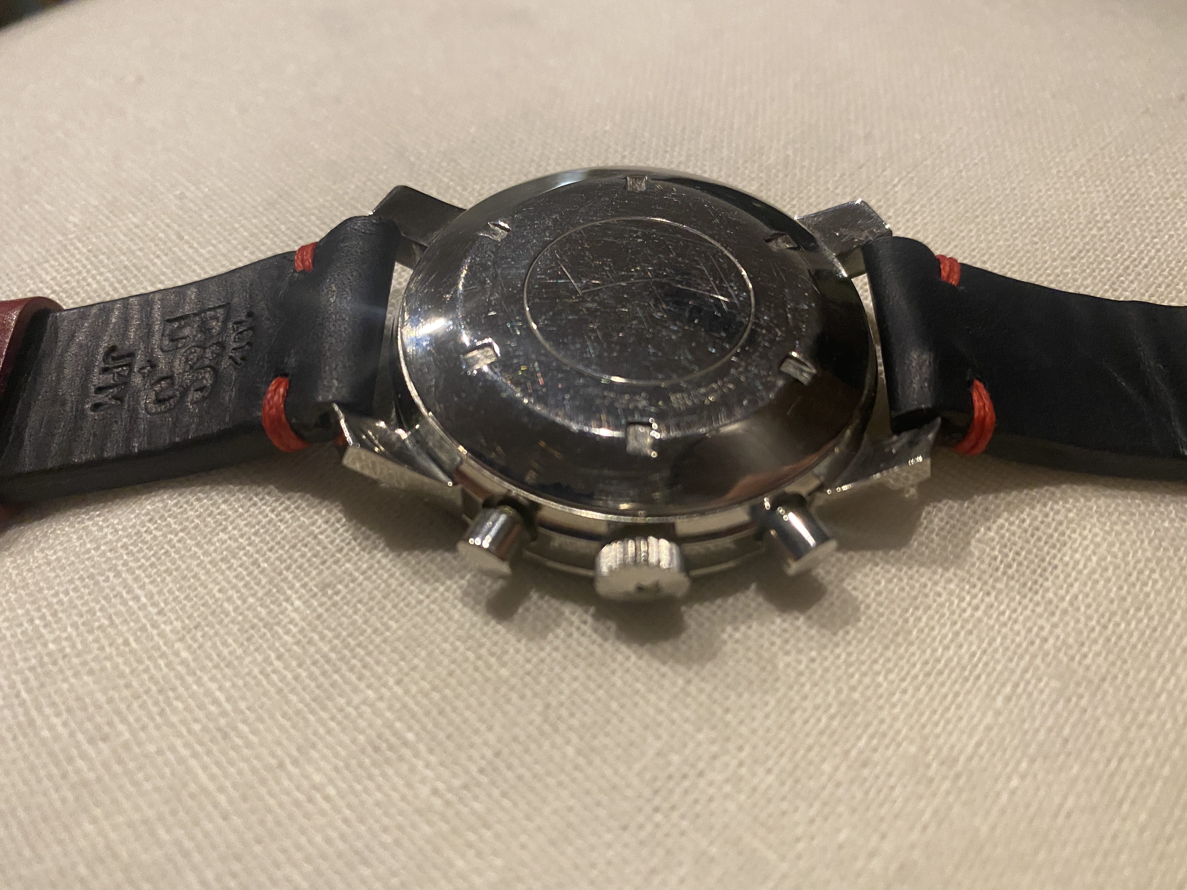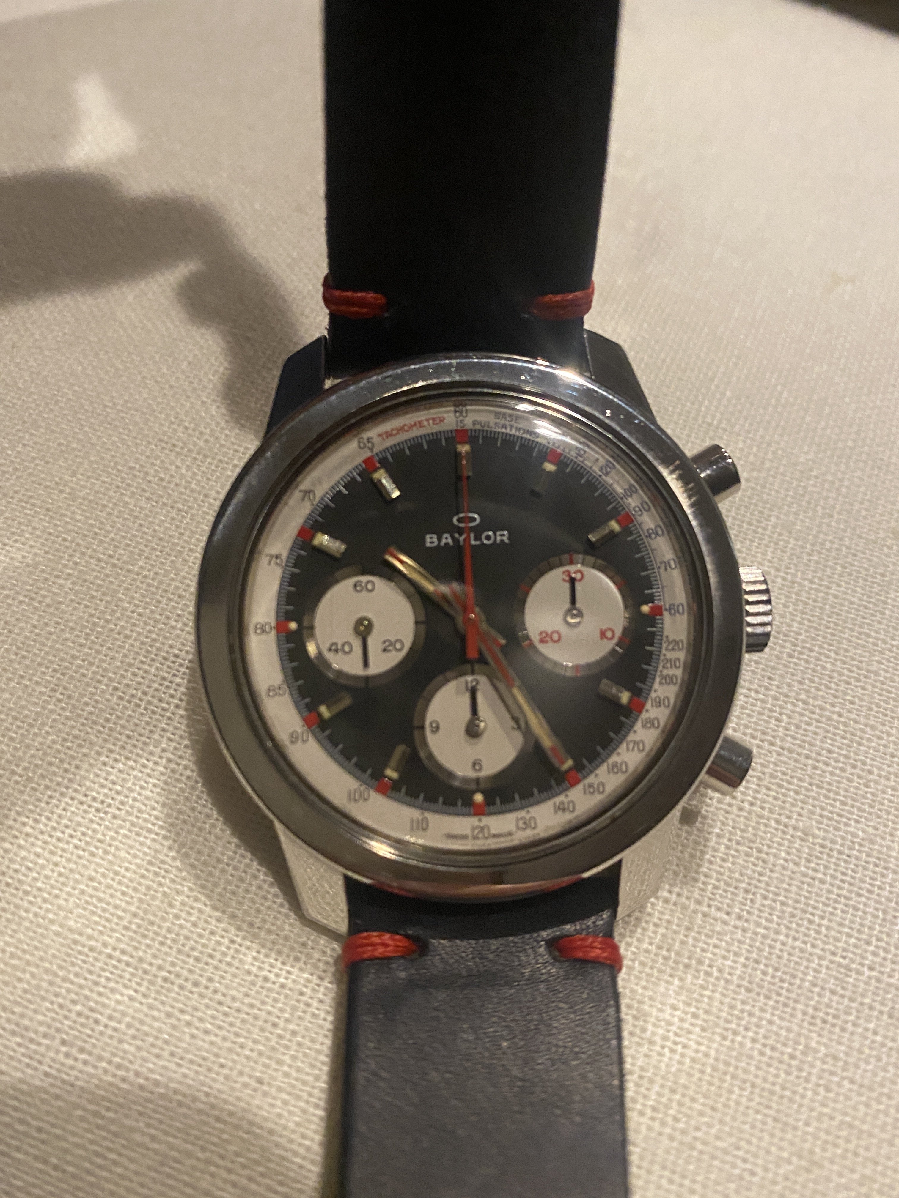 This dial design is not exactly a classic vintage chronograph style, so it will mainly appeal to a certain subset of collectors that likes funky 1960s/1970s style. Regarding condition, the dial and hands look great, but the case is moderately polished. I am also wondering about the finish on the bezel. The photo seems to show a radial brushed finish, but I'm not sure about how well it is preserved. Or perhaps it is just the glare on the bezel.