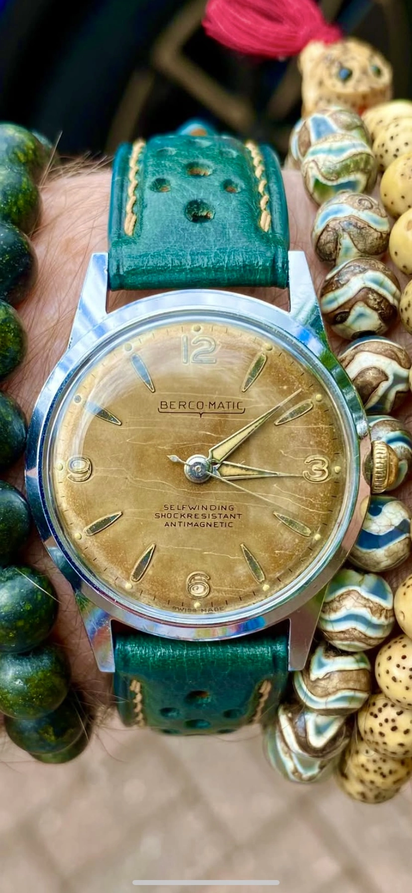 Anybody come across the Berco brand before? I am assuming this to be a 1950’s example based upon the styling and lume. I absolutely love the dial and hand patina on this!