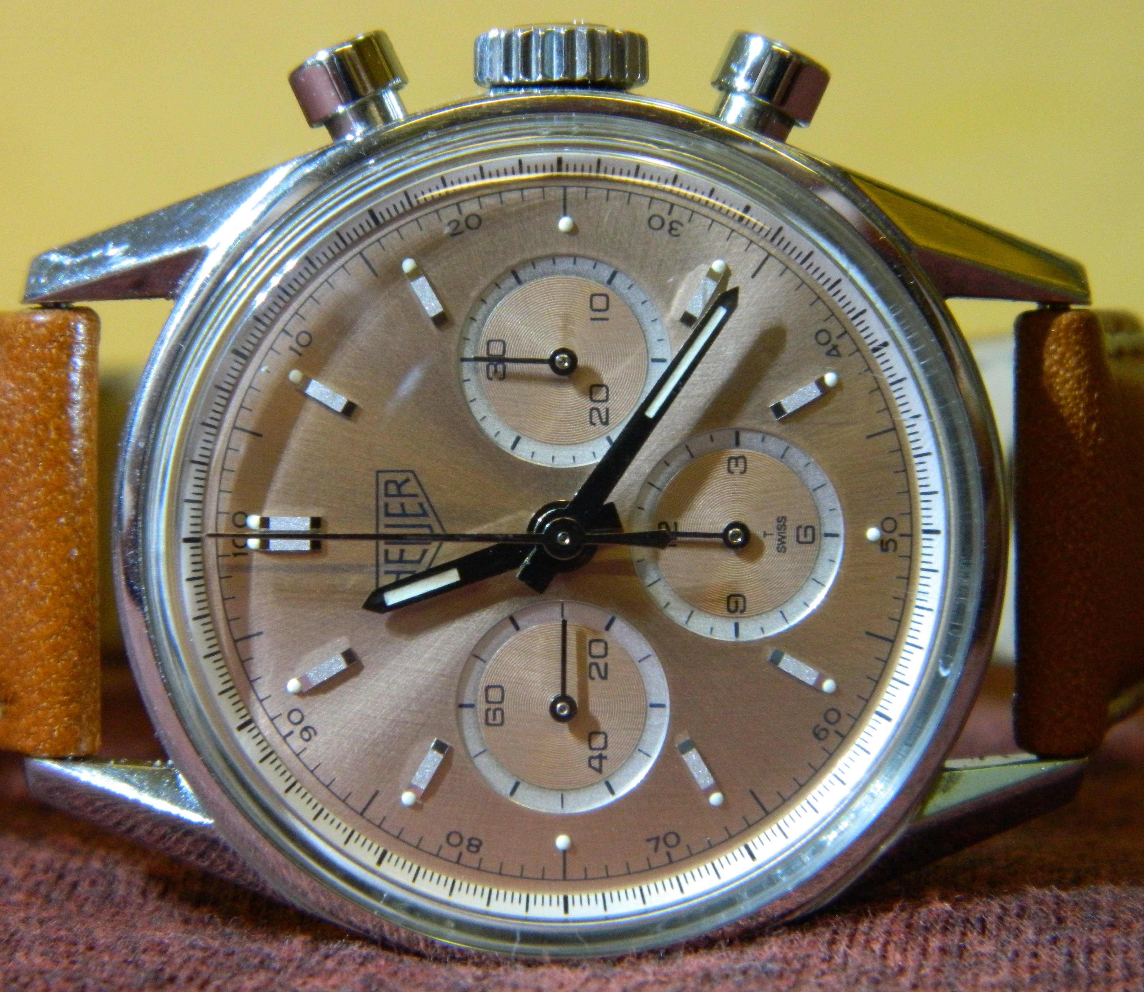 5) The CS3112on a tan Hirsch rally strap with the original Heuer 16mm buckle and pin.