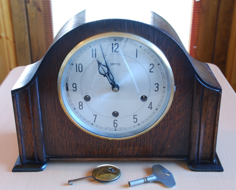 Here's what I bought and it's a Westminster chiming Smiths (Made in England) Mantle clock. From the Fifties, I suspect, with a K6A (522) calibre. Runs for a few hours but stops.