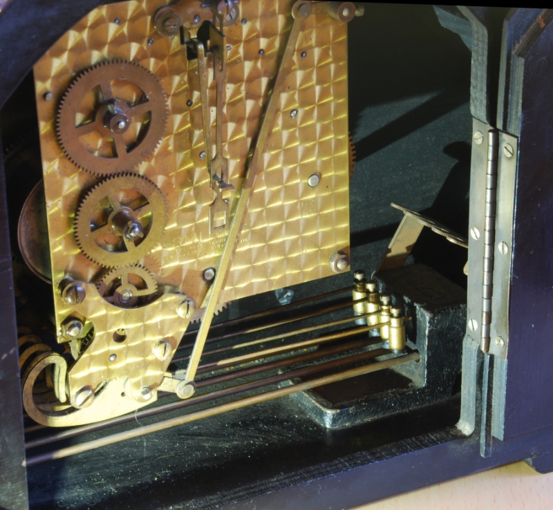 Rear door open and you can see the hammers which strike the horizontal rods to make the chimes. Takes me back to Sundays sitting quietly (or else!) reading in my Grandfather's front room.