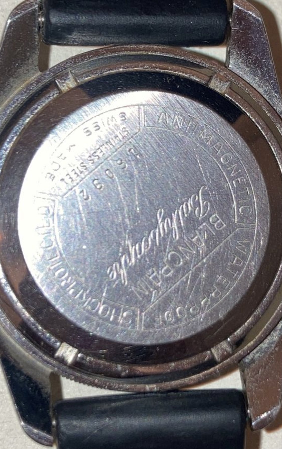 Pls. Add a dial picture. I'd not send it to Blancpain. There is a good chance, that your case is a complete fake and the BP inner engraving as well. Blancpain has no records left. And the old employees, who could tell, which are Originals, are mostly gone. Blancpain was bankrupt. A shell. And they are not happy to be reminded of that dark chapter; beeing a luxury company now. These Bathyscaphe versions were cheap watches then, starting with the base AS movement. Produced with the hope of getting sales up and survive. Water resistance was not as promised and that is one reason, you can not find many now. Just discarded in the past.