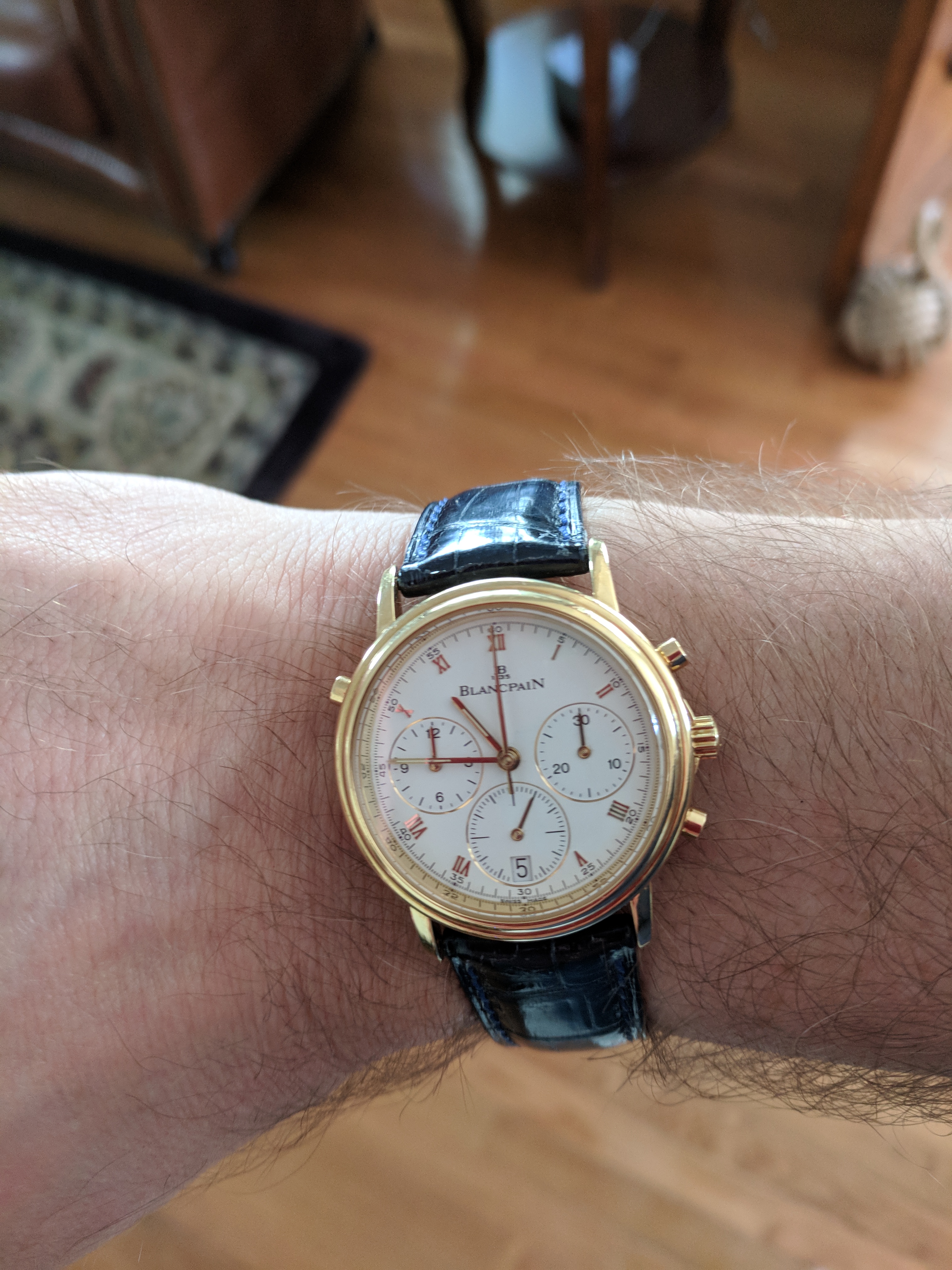 ·Having just read a great write-up on a Blancpain Fifty Fathoms Bathyscaphe, I was inspired to post a picture of my Blancpain Rattrapante (Cal. 1186). I'm a big fan of BP.