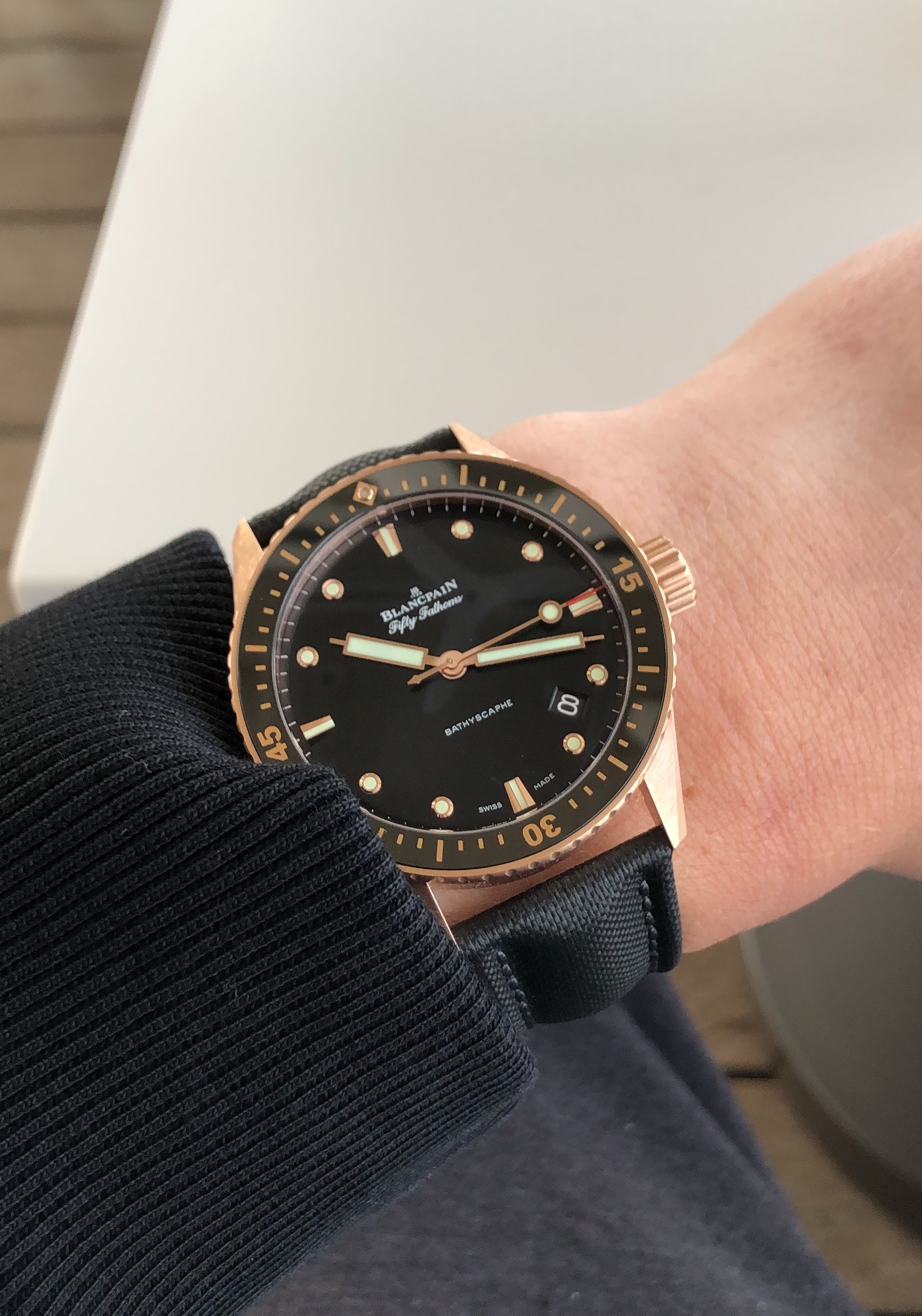 Haven't had a BP in many years but had one of the early day/date/moonphase models when they were introduced in the 80's. Nice watch, a bit small by todays standards at 34mm but that was part of their charm. Wasn't much money, about $1,100 in 1985 when I bought it in Zurich.