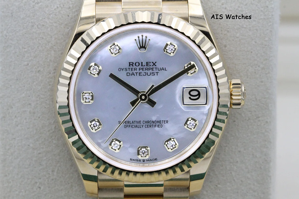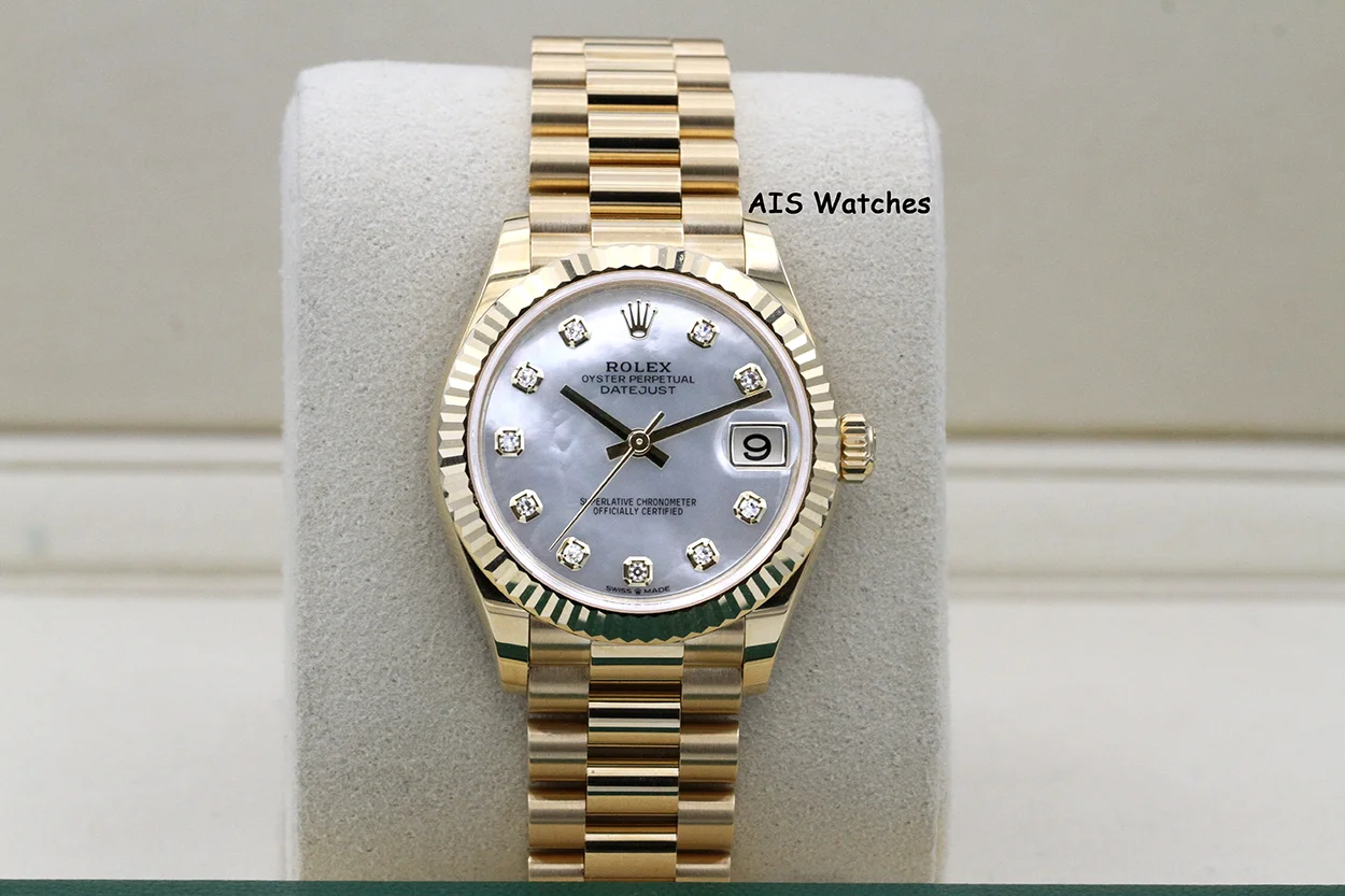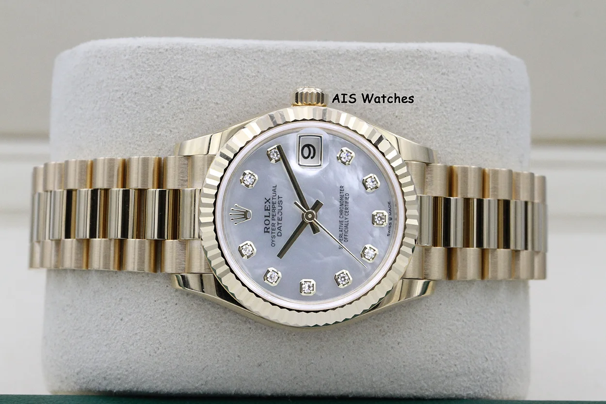** BNIB Rolex 278278-0010 Datejust 31MM Yellow Gold Mother Of Pearl Diamond Dial MOP President Bracelet