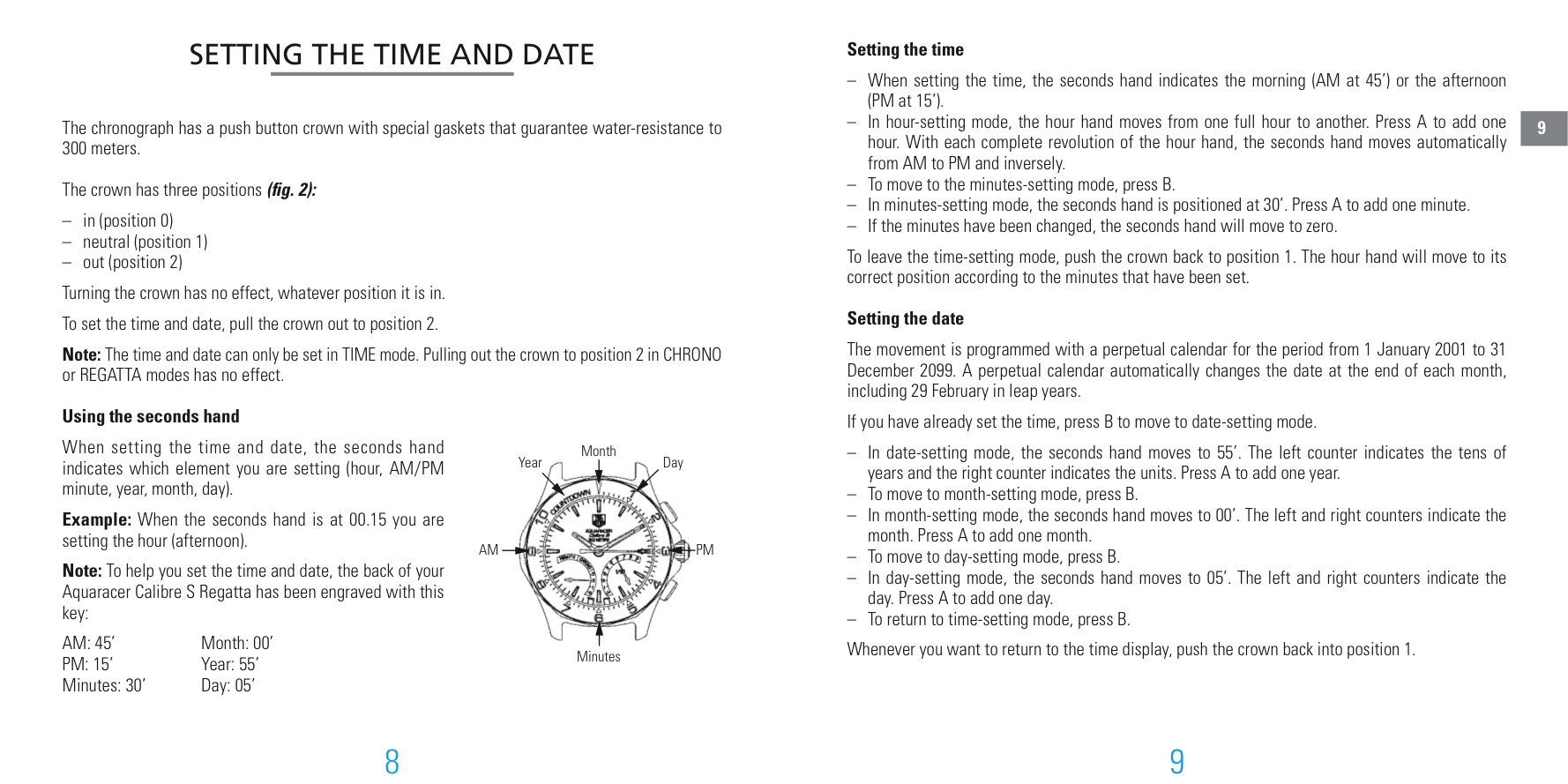 ·I am looking for the manual for this specific model, many of it's feraures are covered in the Aquaracer Calibre S manual but some are not.