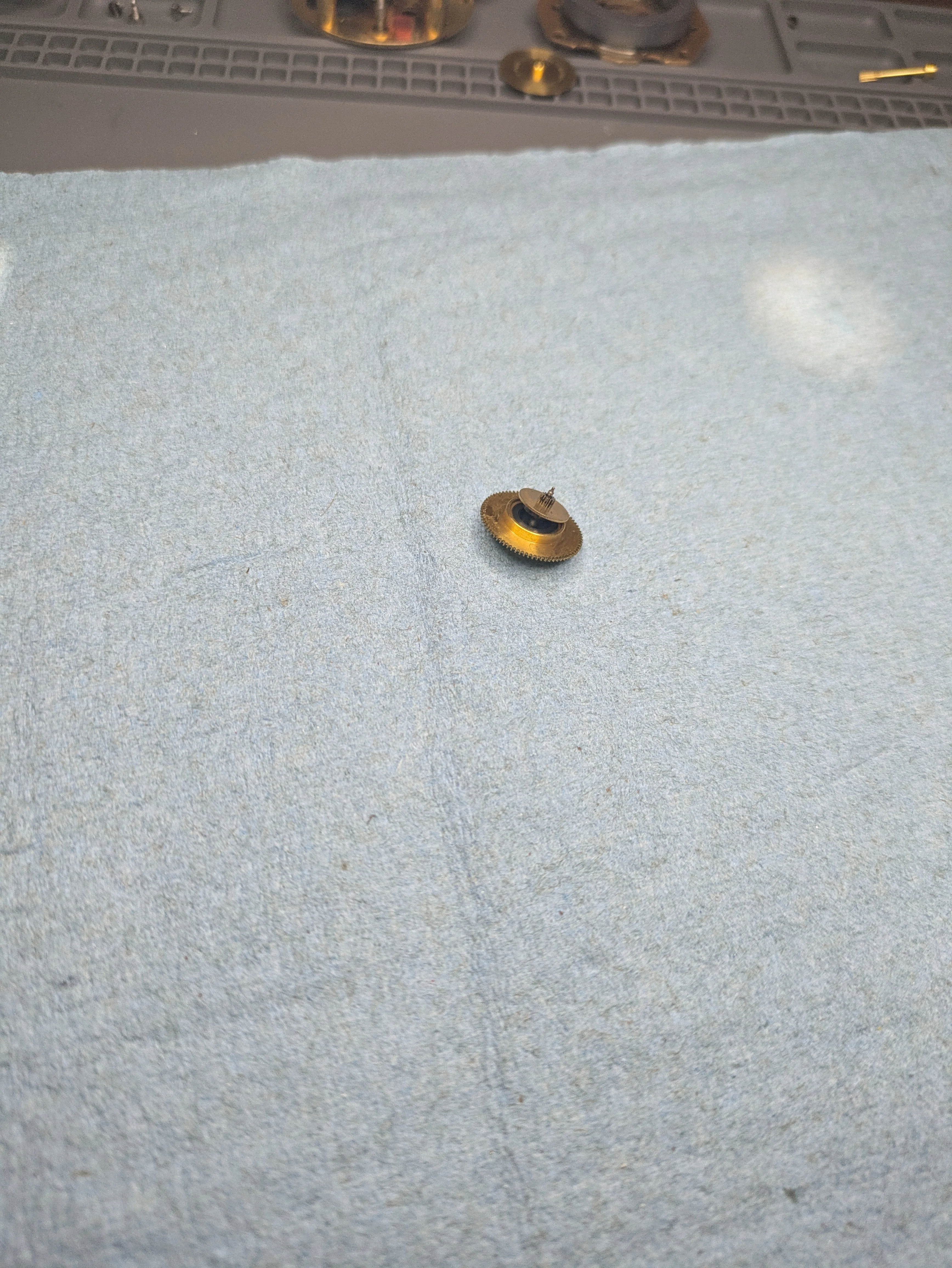 Thanks, I see, so the brass wheel in my pictures can be unscrewed from the axle of that part in your picture that contains the mainspring.