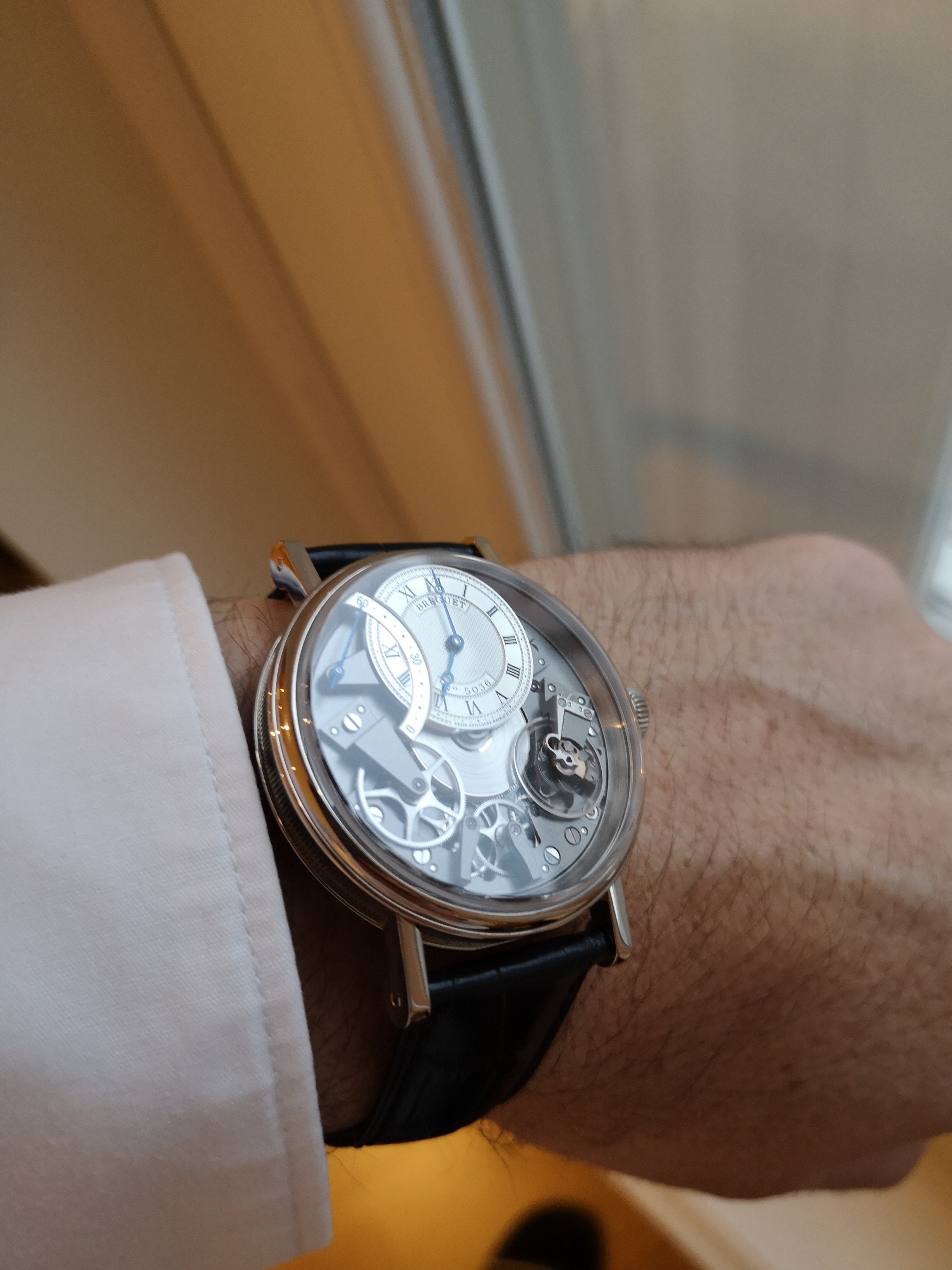 ·Wanted to share a picture of my Breguet Tradition 7097 in white gold, I’ve been after this piece for about 18 months, humming and ahhing about it as it’s a ridiculous amount of money. A few months ago I had seen one on chrono 24 from a dealer in Germany at a (relatively) good price but I never pulled the trigger on it and it got sold. More recently I saw another one come up at a similar price and although marketed as used looked to be in excellent condition.