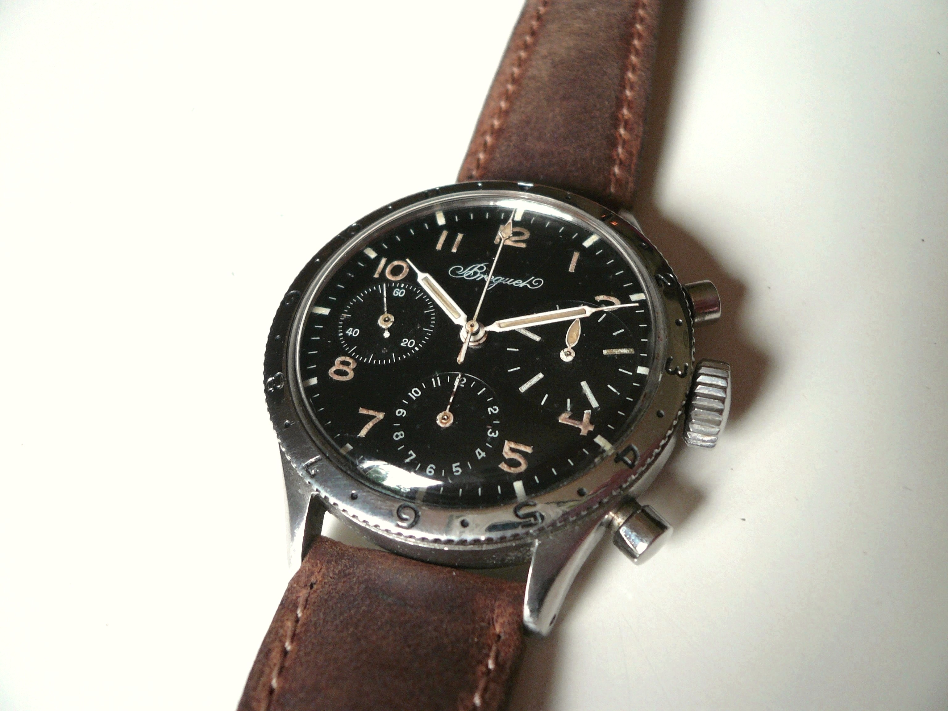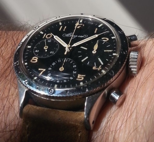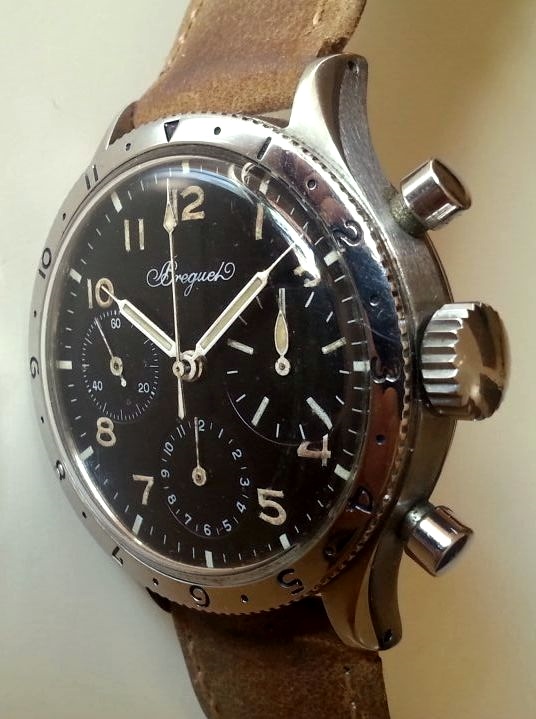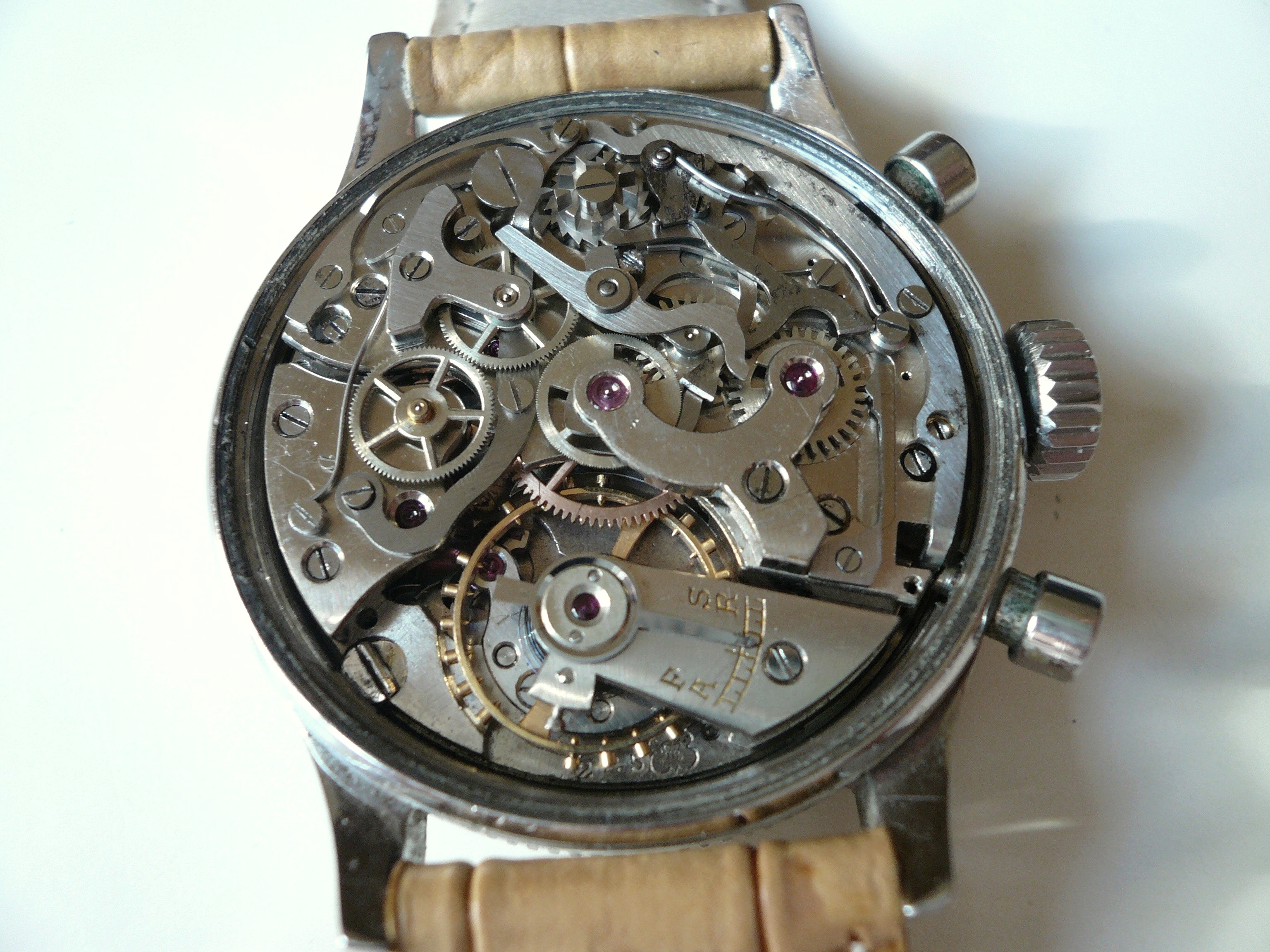 It was produced in the middle of the 60s, it has the dial signed with 3 counters ( one it's a big eye counter with 15 minutes ), engraved bezel, modified Valjoux 22 movement (225) flyback with unmarked bridge ...