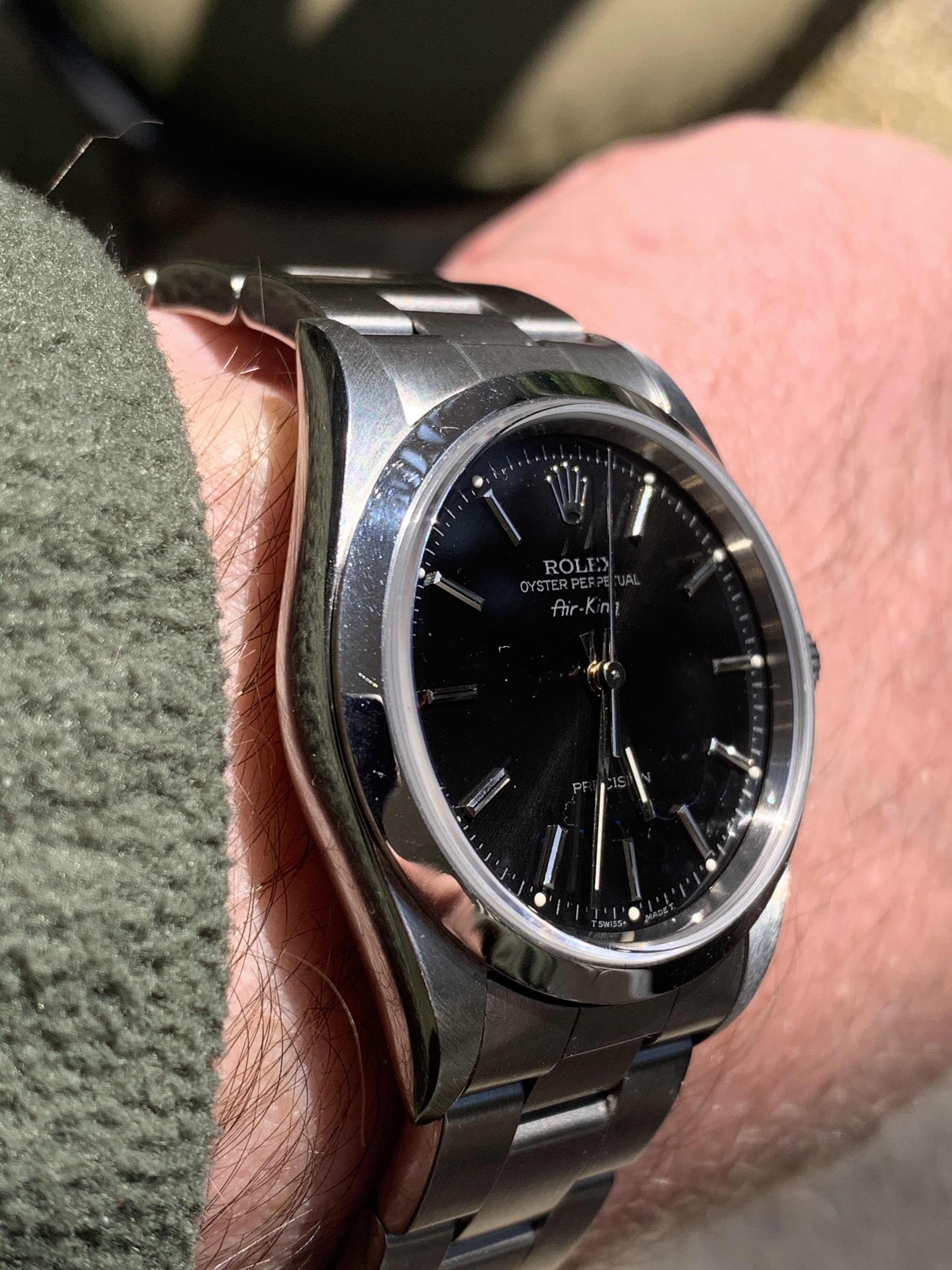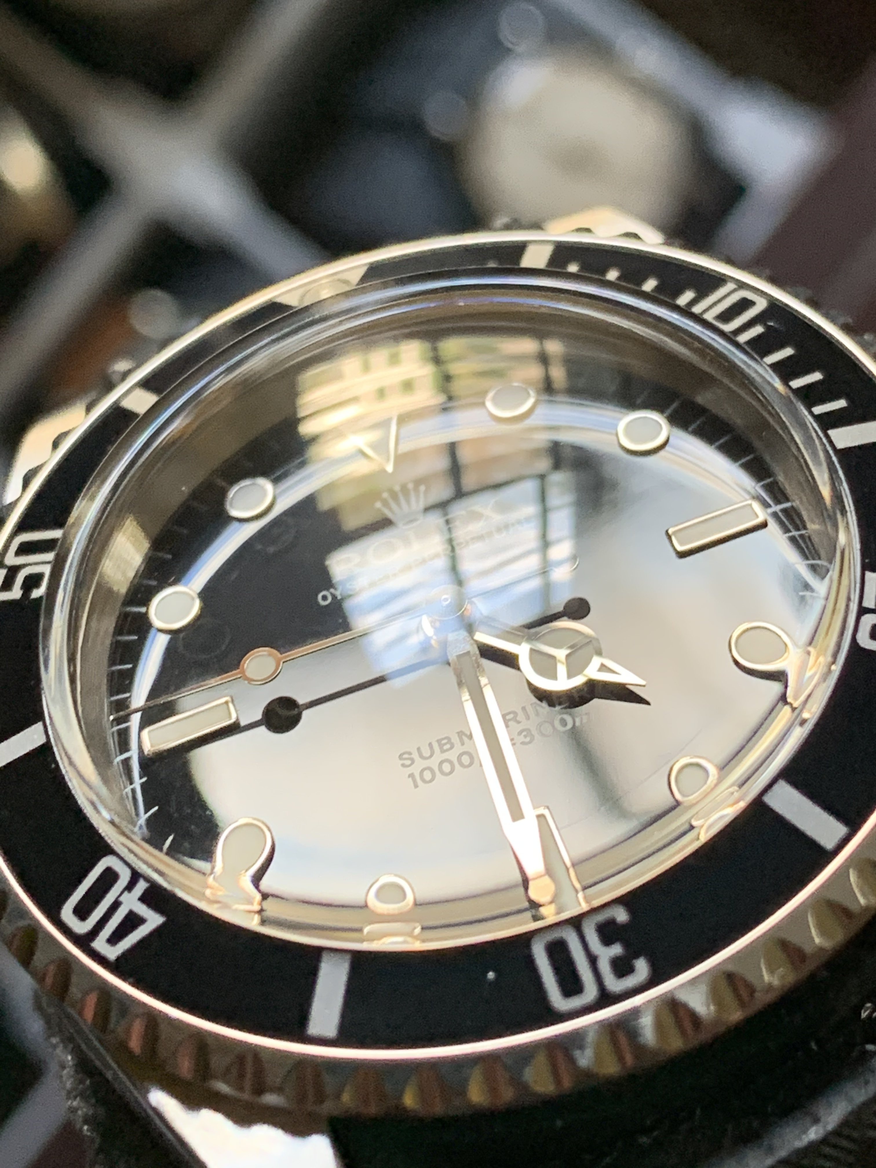 I have one other sapphire crystal Rolex and that’s my 14000 Airking- I love the watch, but looking at it side-by-side with my OPD wearing it’s thick acrylic, it lacks the shimmer, sparkle and 3-dimensional pop that the acrylic gives. I know the dial has the shimmer as I can see it in some light- but the crystal is just so flat, lifeless and sterile.