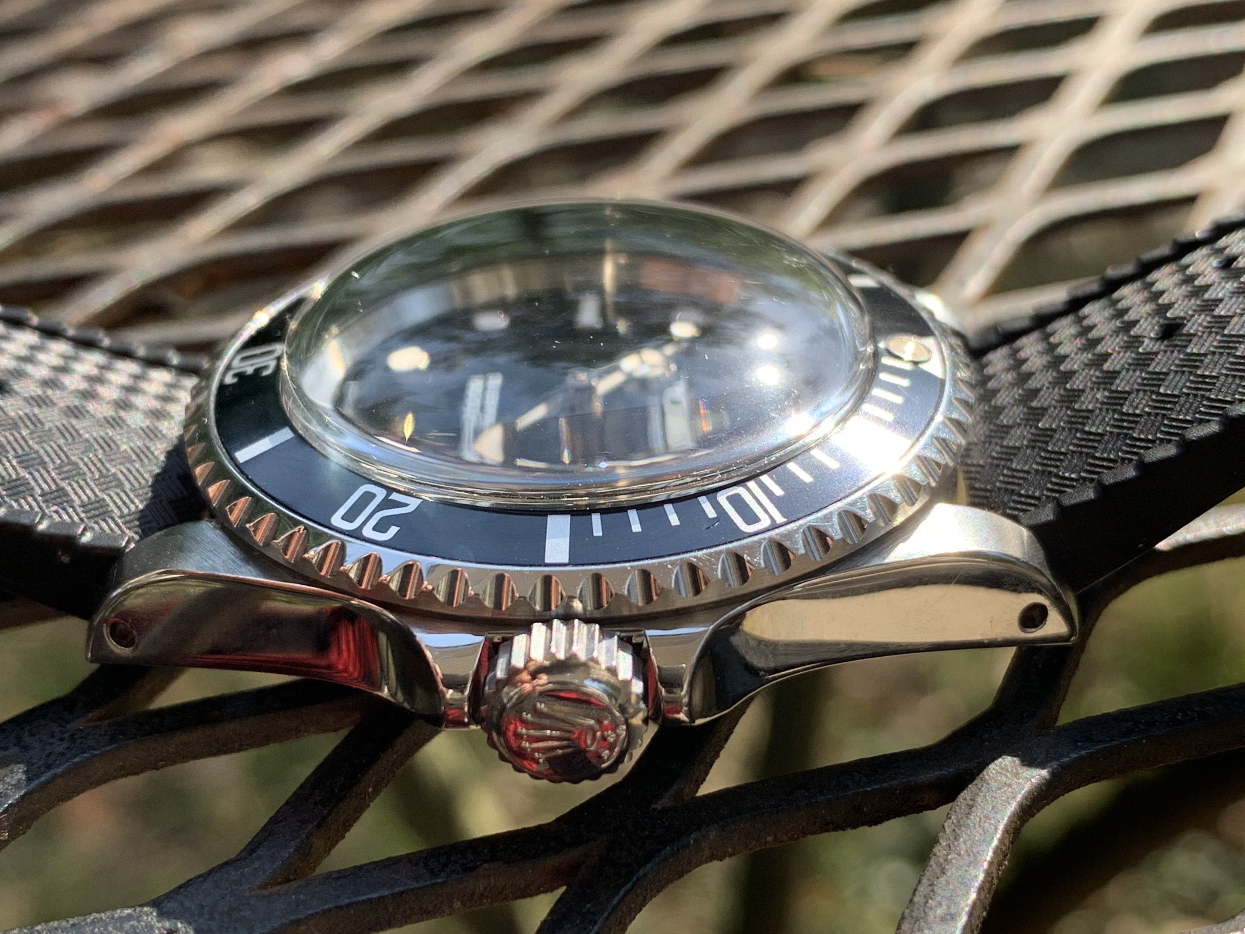 The acrylic is sensational. The indices pop unlike under the sapphire where they seemed almost flat- you see their applied depth and the black dial appears deeper black. The slight distortion of the dome makes the indices actually appear slightly larger which is something I felt was amiss before- they seemed a little small for the surface area of the dial.