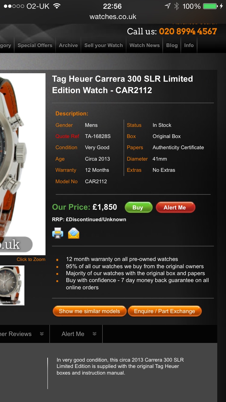 ·Hi I am currently looking at buying a watch, original plan was a new watch (formula one auto) . However I have always loved the slr 300 But out of my price range. I have found a second hand one on watches.co.uk at a great price that I can afford. And looks to be in good condition. Only downside is it does not have a tag heuer original certificate. They claim they have checked it out and provide there own authenticity certificate.
