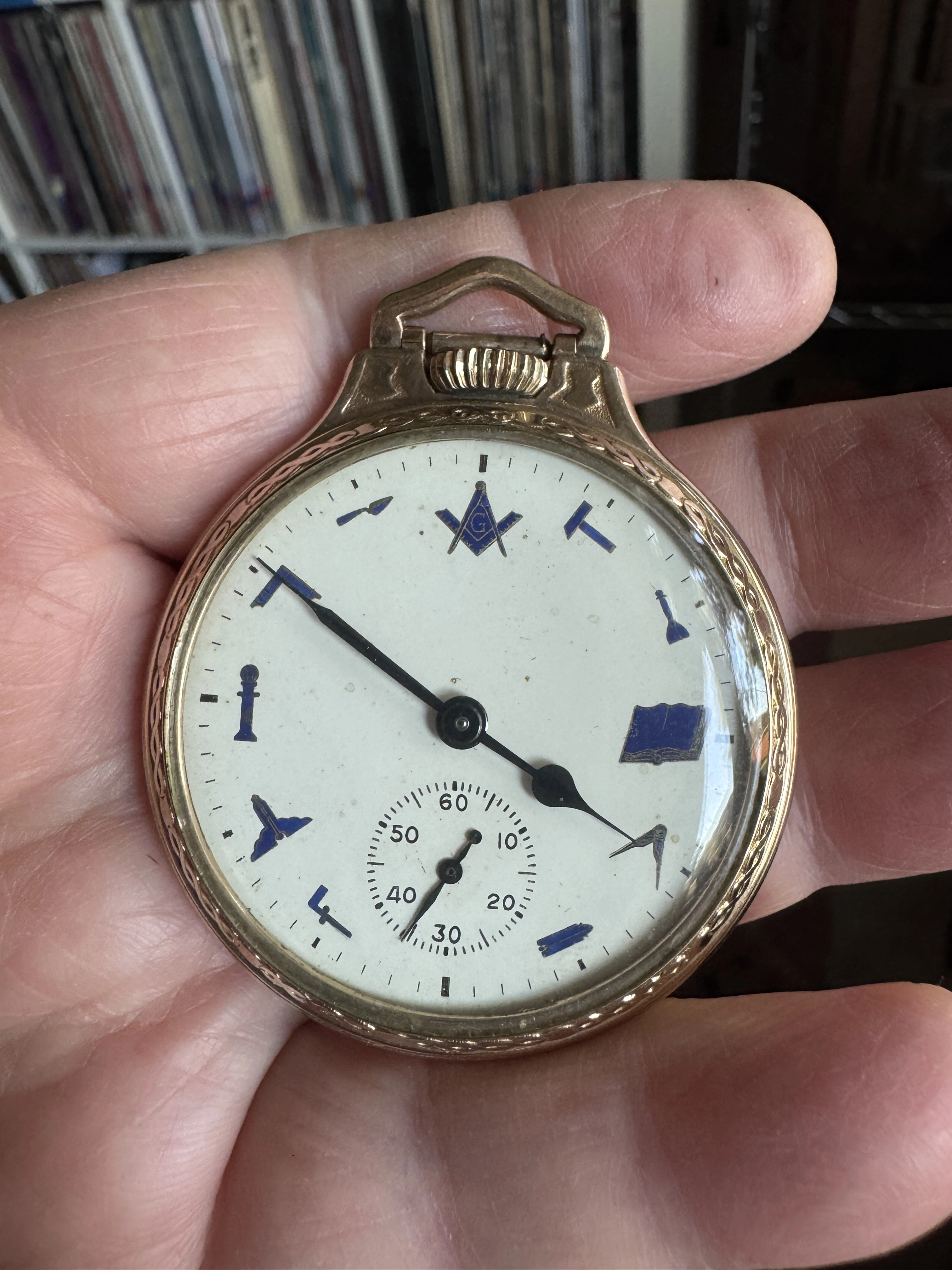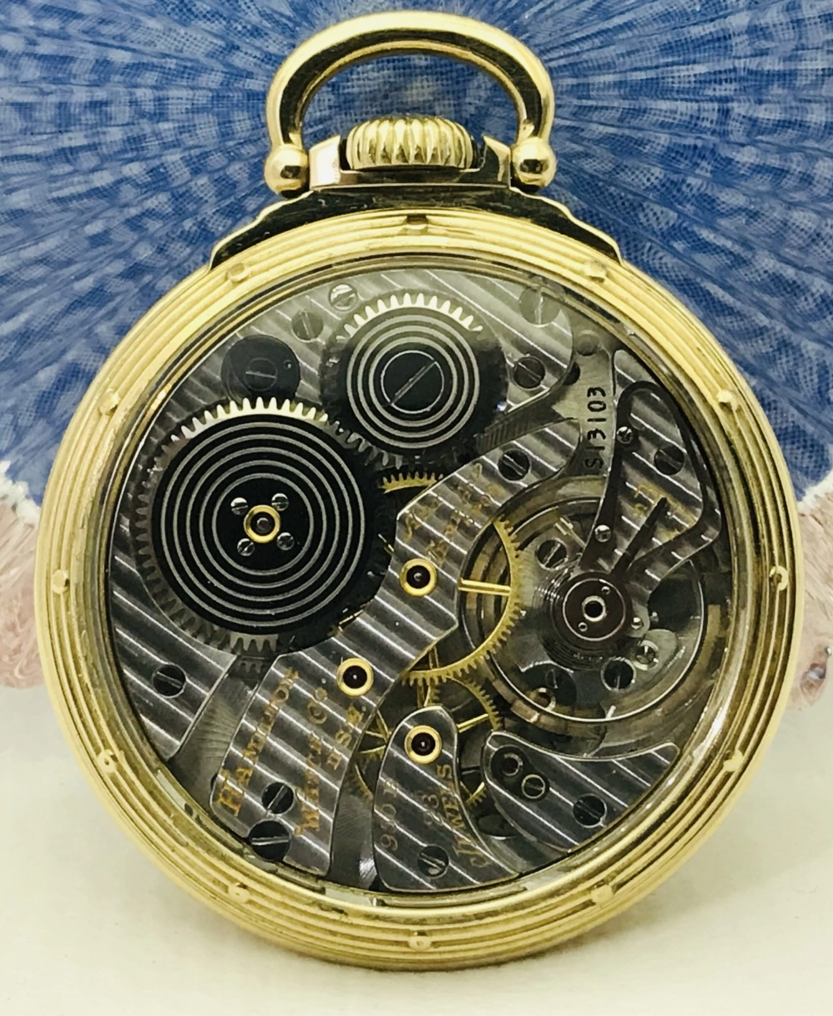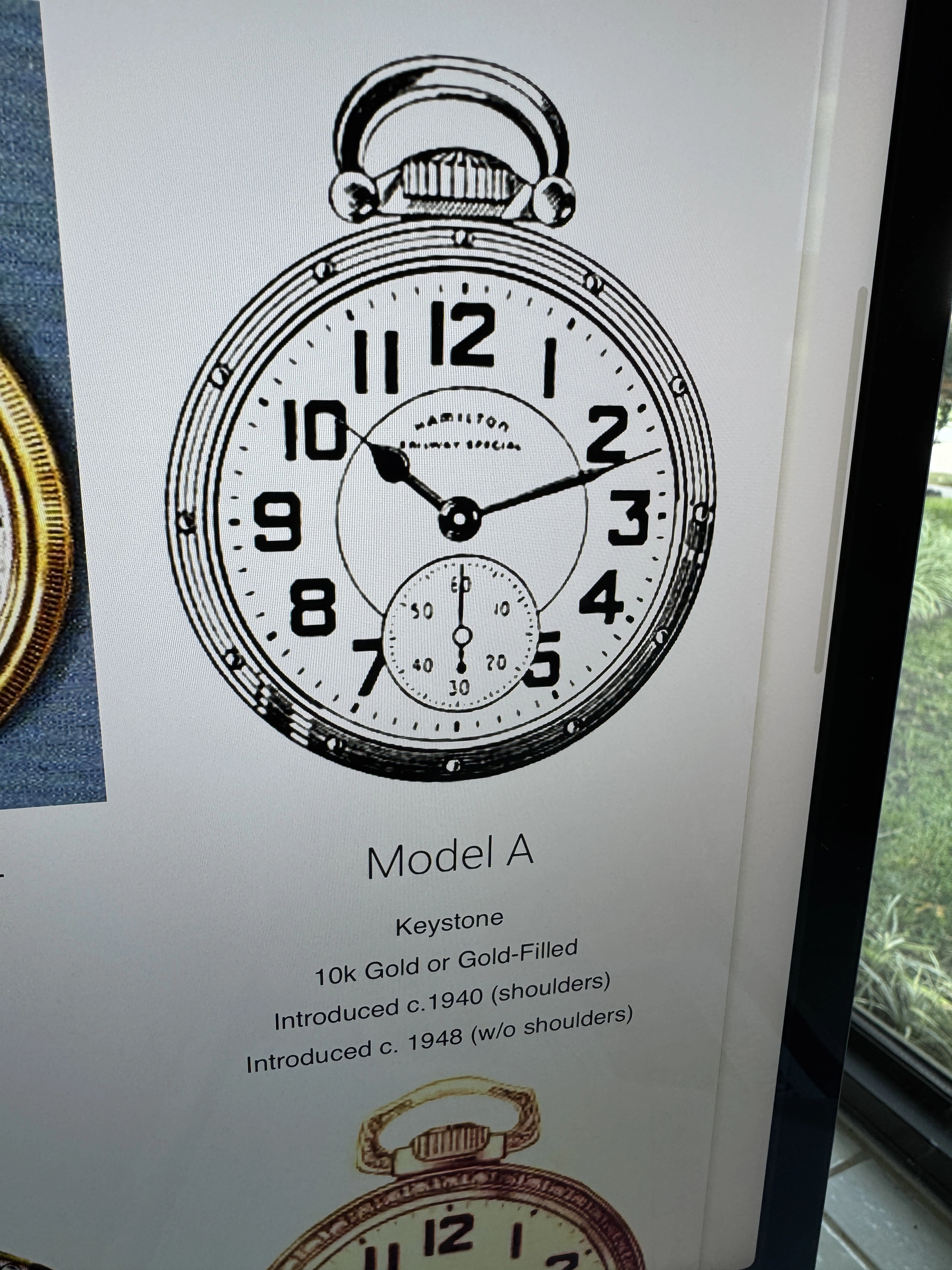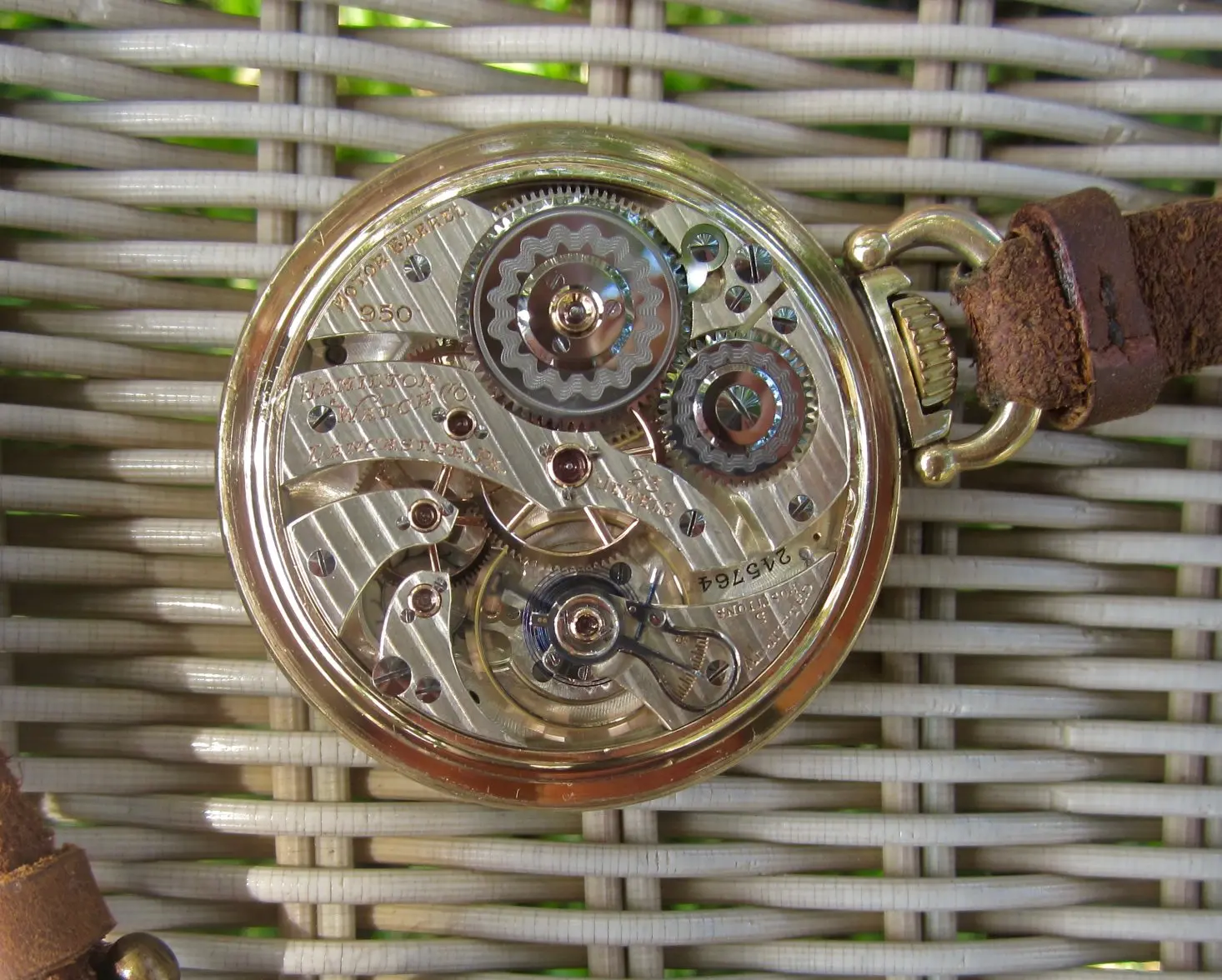 Earlier in this thread, I posted a picture of my Hamilton 950B which has had a double sunk vitreous enamel dial fitted to it. It came to me with a melamine dial which was factory original. When the vitreous enamel dial became available, I liked it better. I have saved the original melamine dial. I am showing my Hamilton 950B with the vitreous enamel dial again, along with a picture of the original melamine dial. The 950B posted by