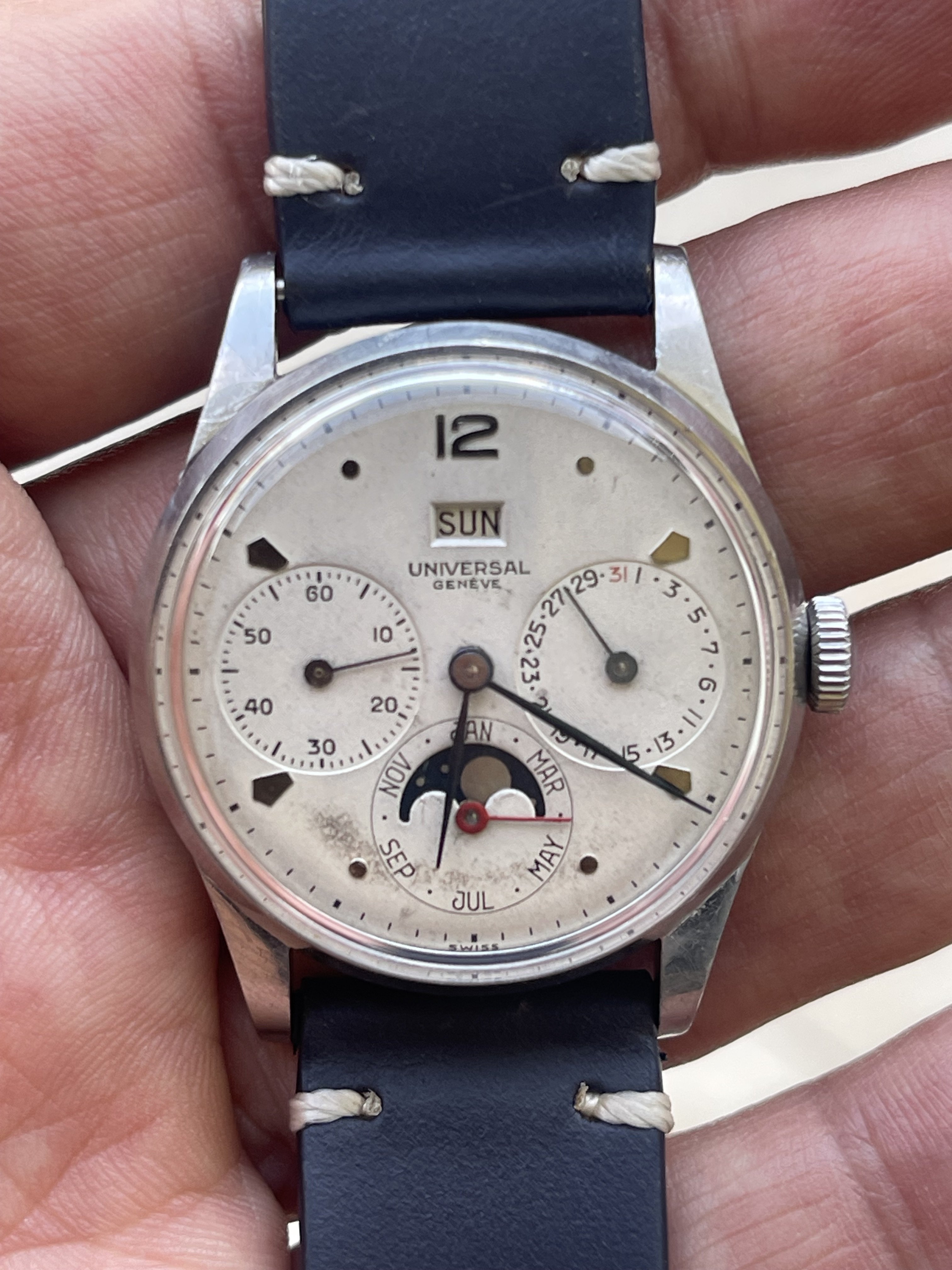 Sub dial markers are very splotchy and not a the same distance from the slight recess. Note that gap in the first picture, while almost none in the second.