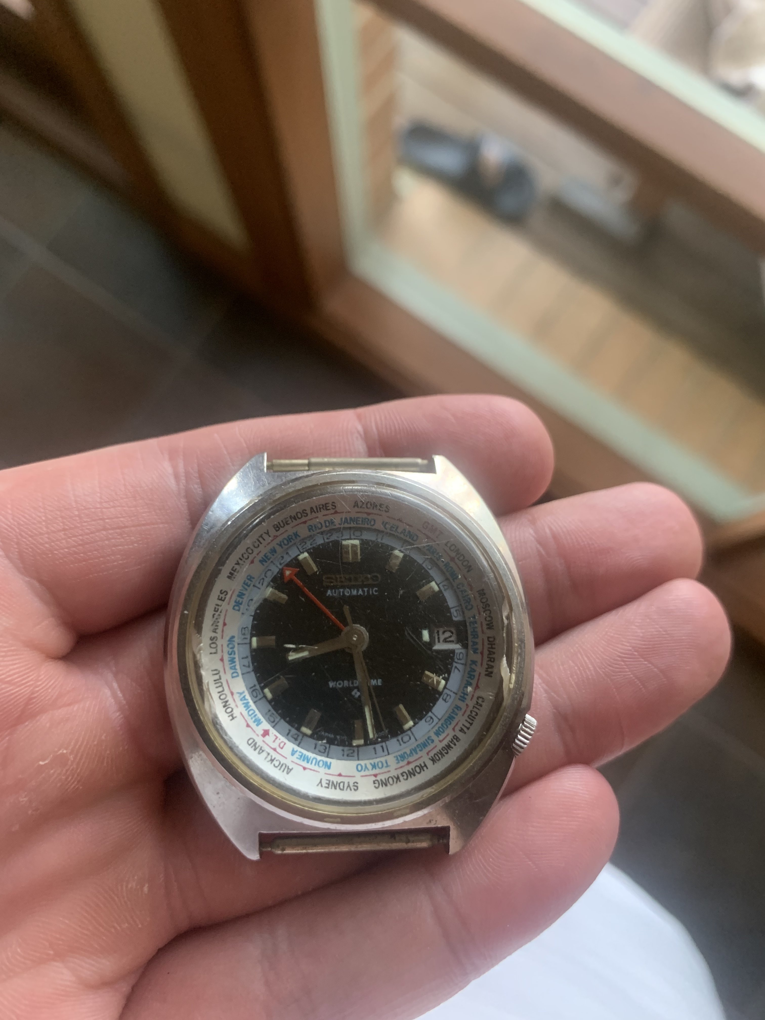 Found this watch while trawling through a drawer at my Grandmothers. The watch belonged to my grandfather who (I believe) may have purchased this during the Vietnam war. I gave it a shake and the watch seems to be functioning - albeit, the stem is broken and so the crown pops clean off. The crystal is also shot, but underneath the dial looks very clean.