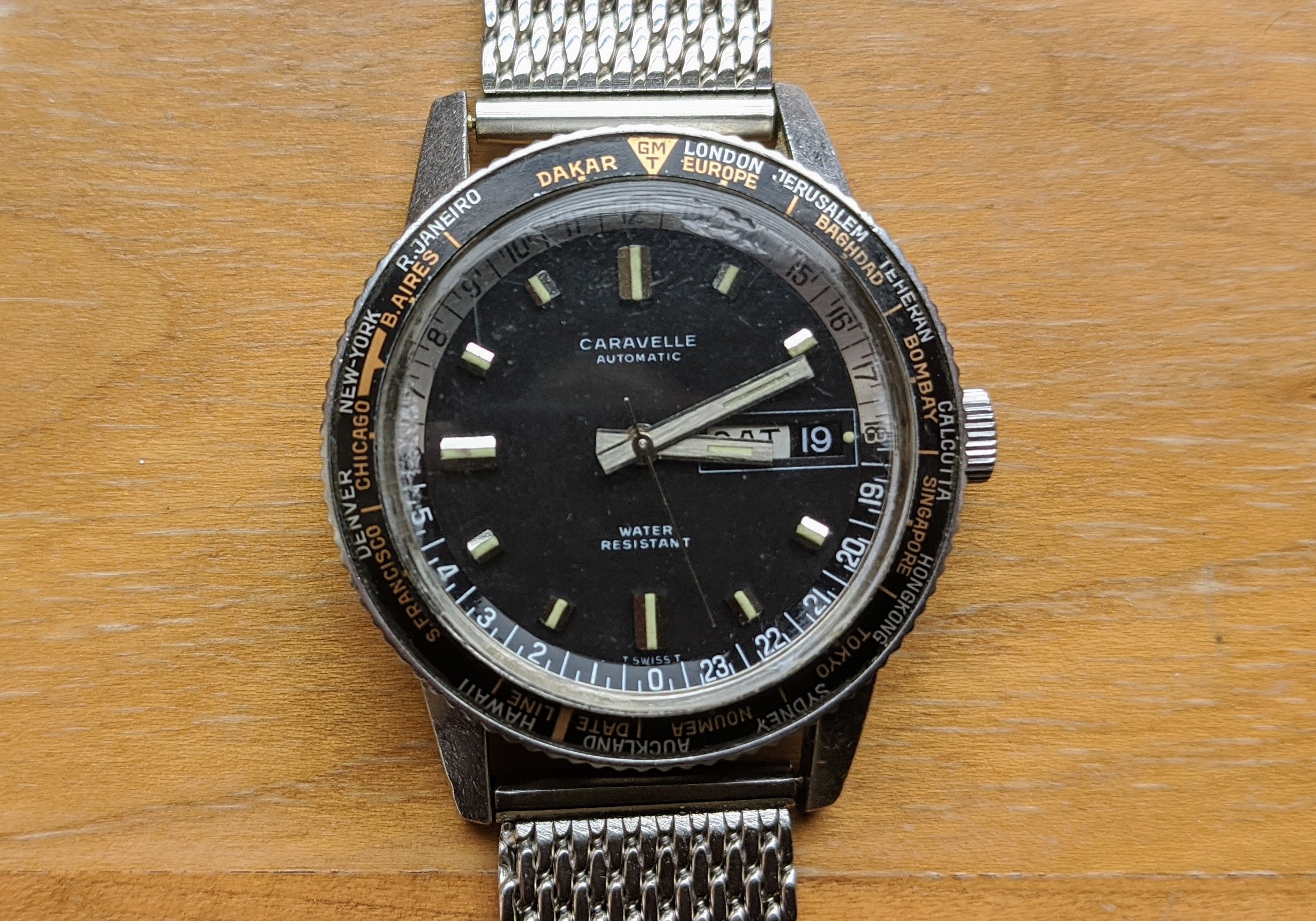 I own one of these watches, in good cosmetic condition, on it's original bracelet. The Caravelle Pilot World-Time GMT was one of the more interesting offerings from Caravelle, and worth collecting if in good condition. I was doing some current price research on these watches and found this thread. I joined the forum to answer some of your questions.