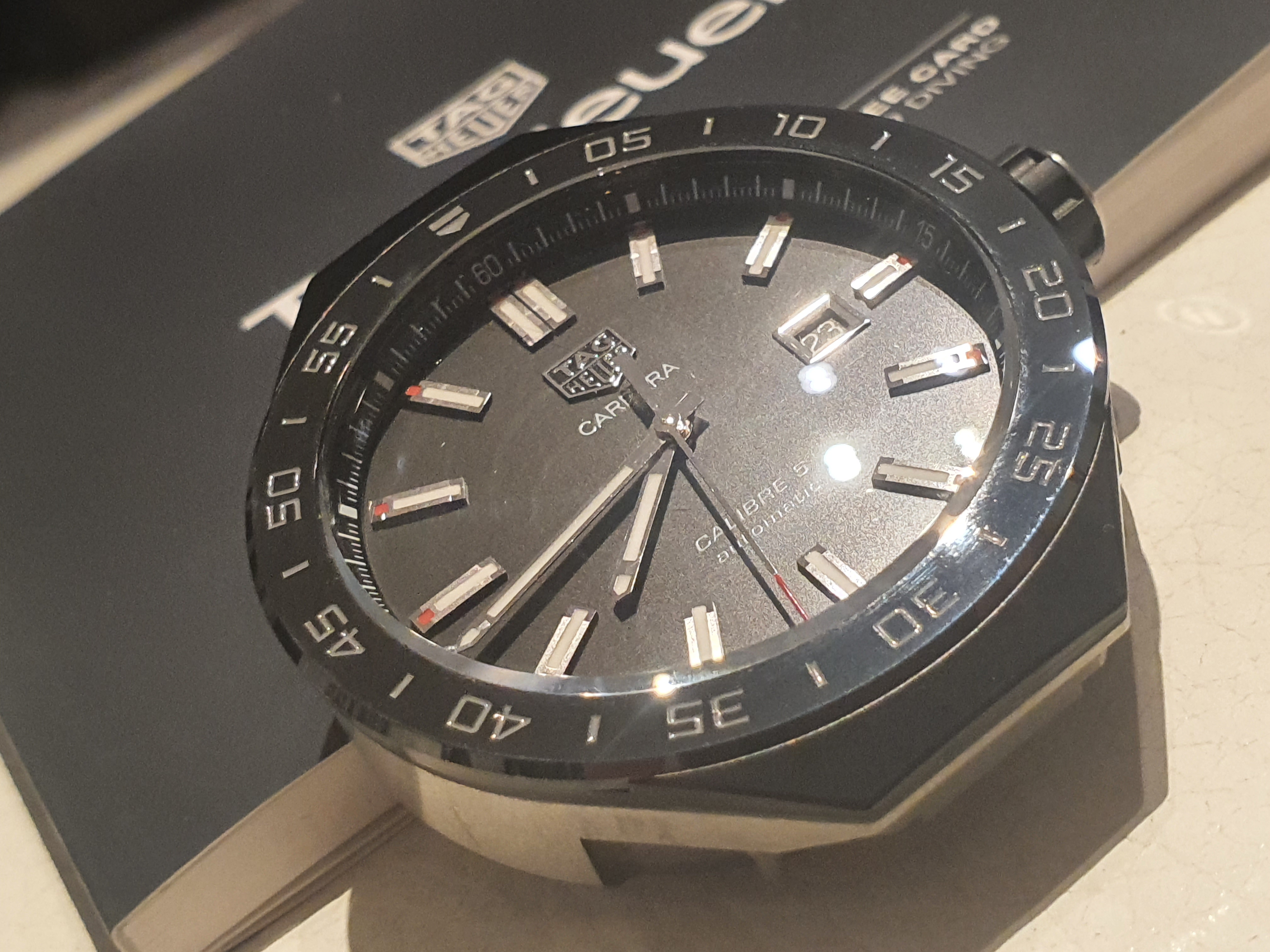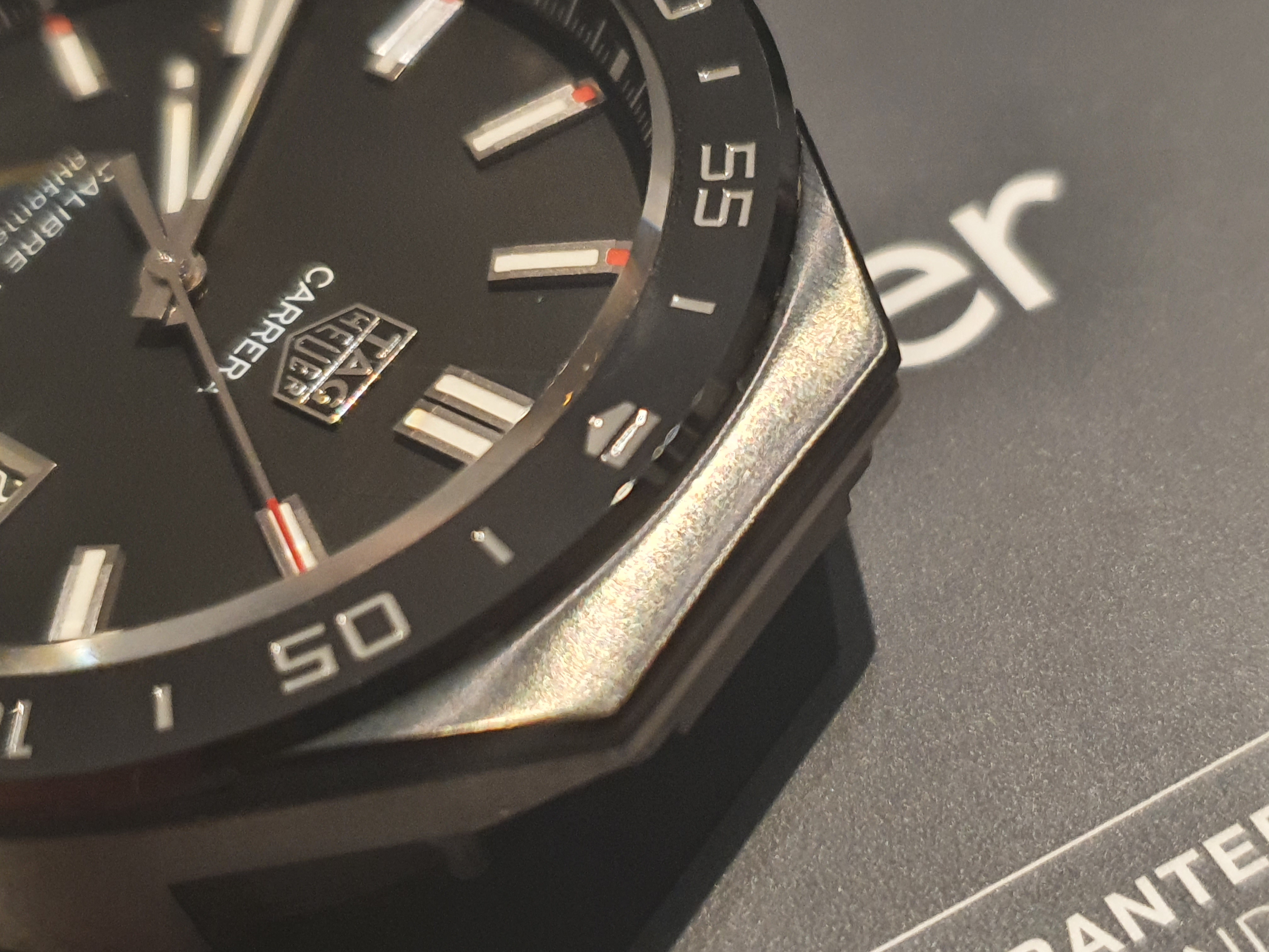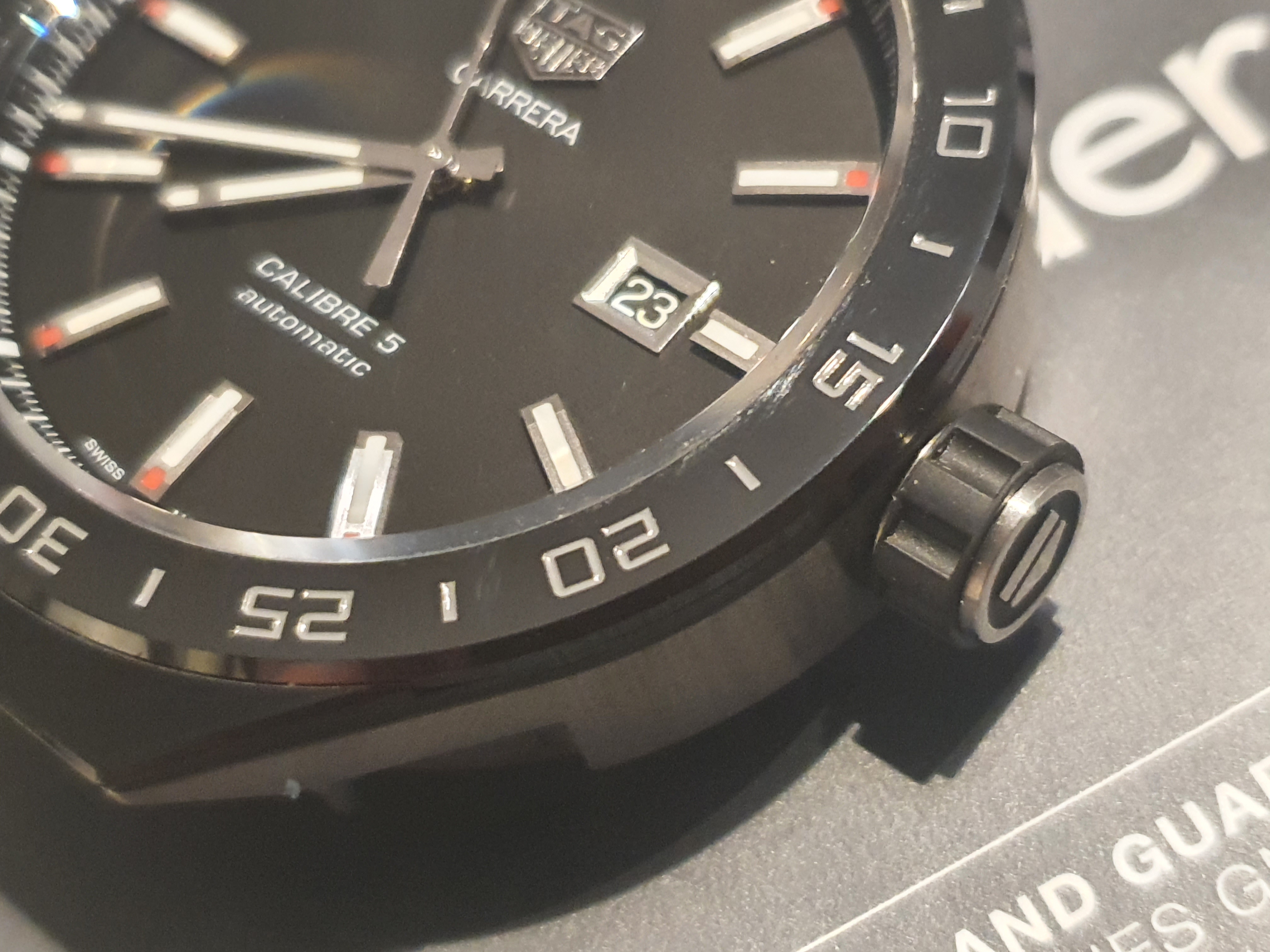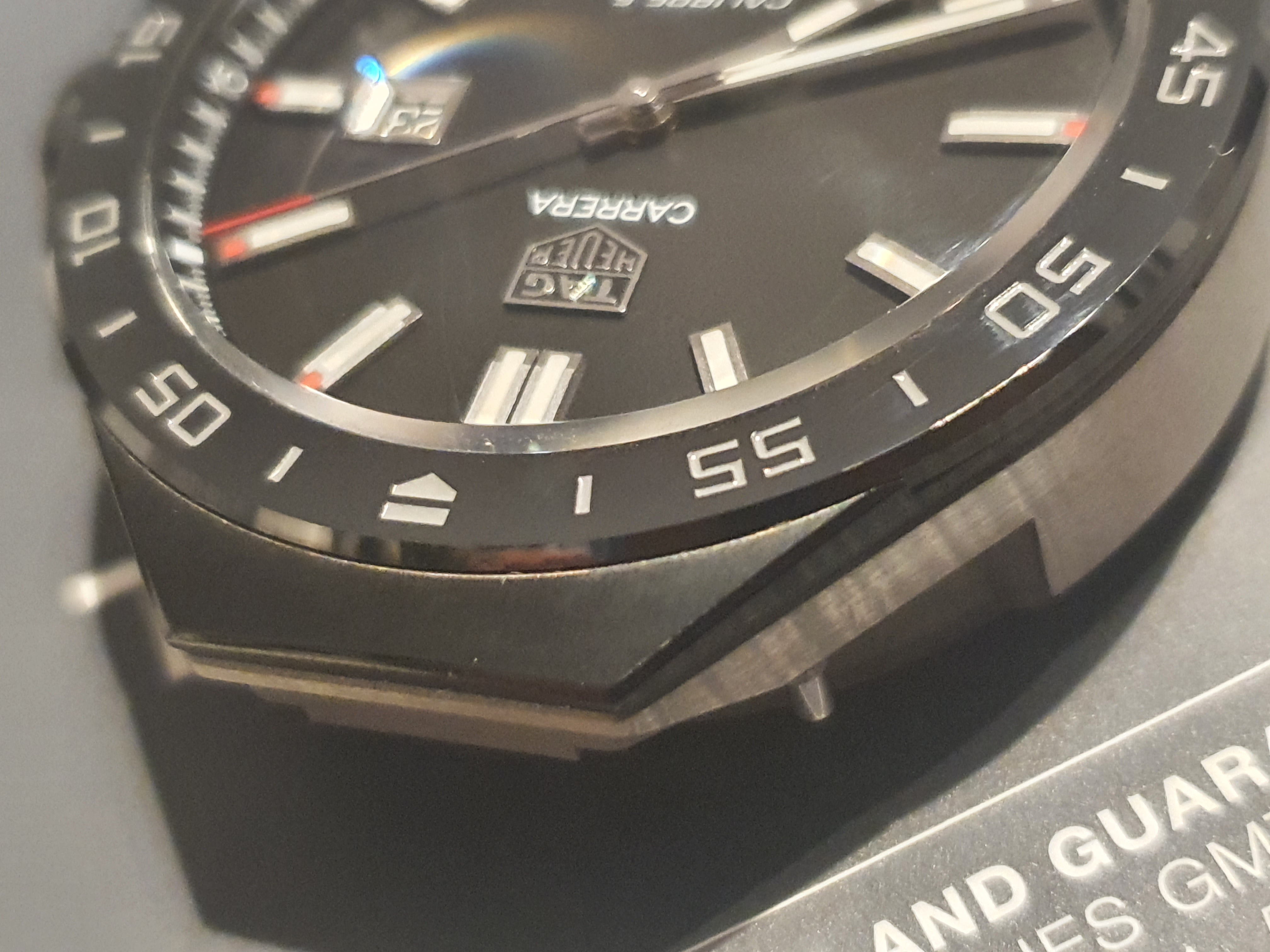 Beautiful, MINT condition. Bezel free of any damage. Corners are sharp, ceramic mint. Absolutely no dents or discolouration. Looks like new ! On the back of the case small scratches, normal signs of wearing.