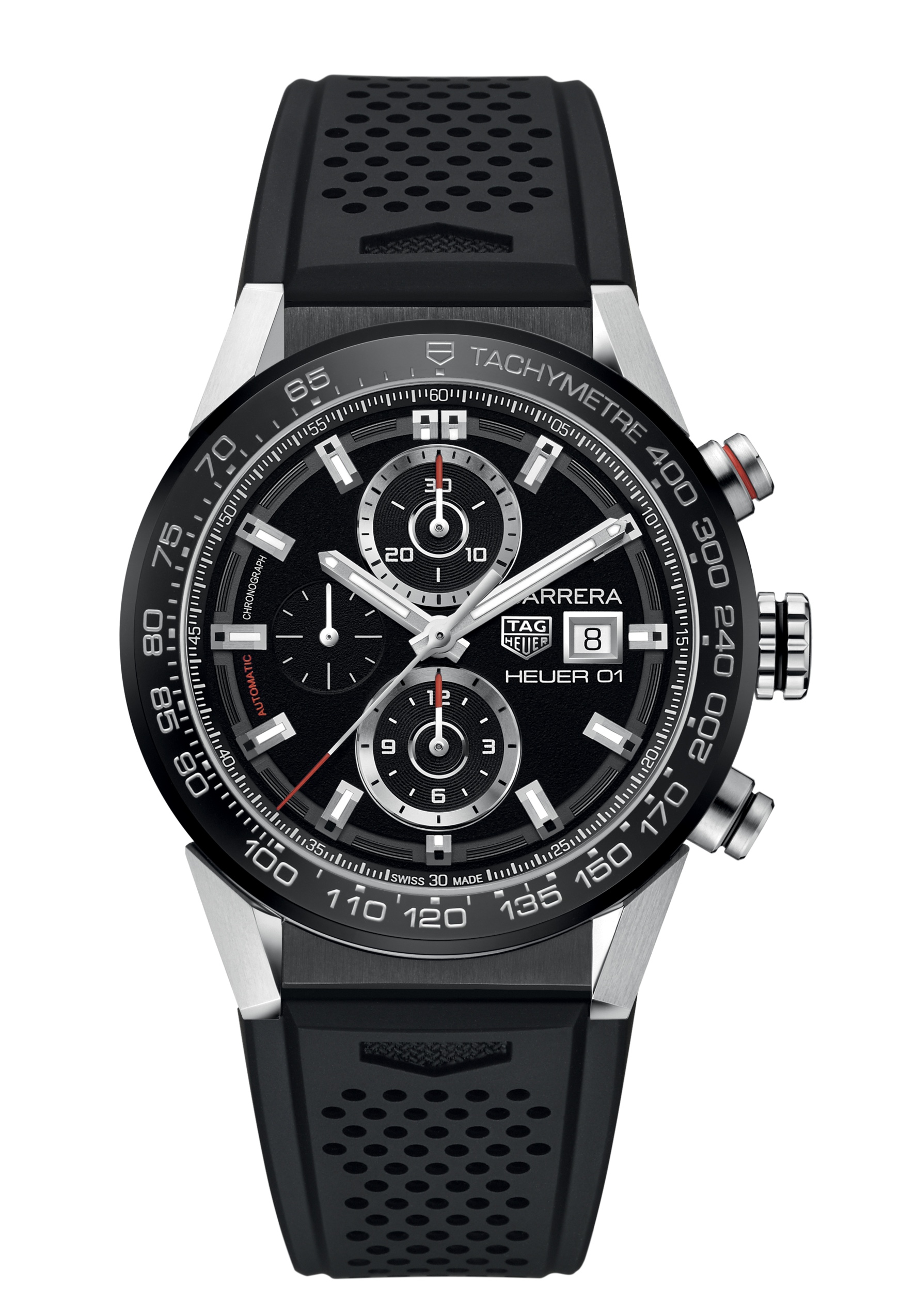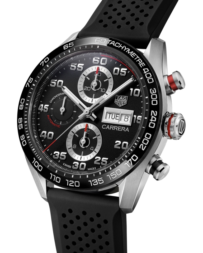 ·TAG Heuer now has a new Carrera Day Date on its website, too. Looks like the only color (so far) is black with a bracelet or rubber strap.