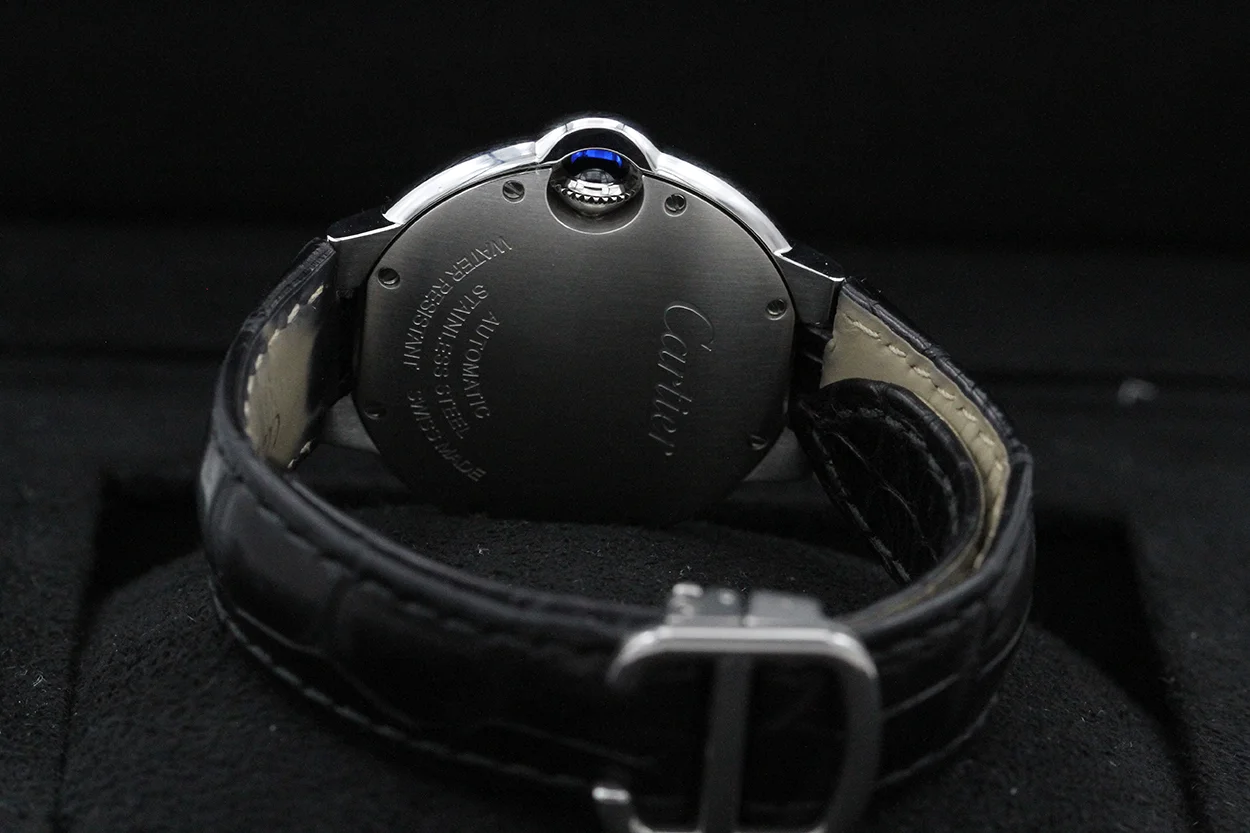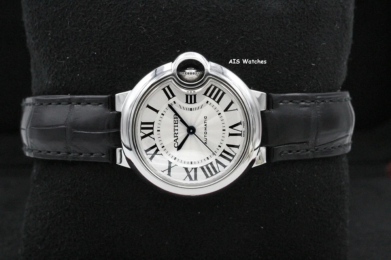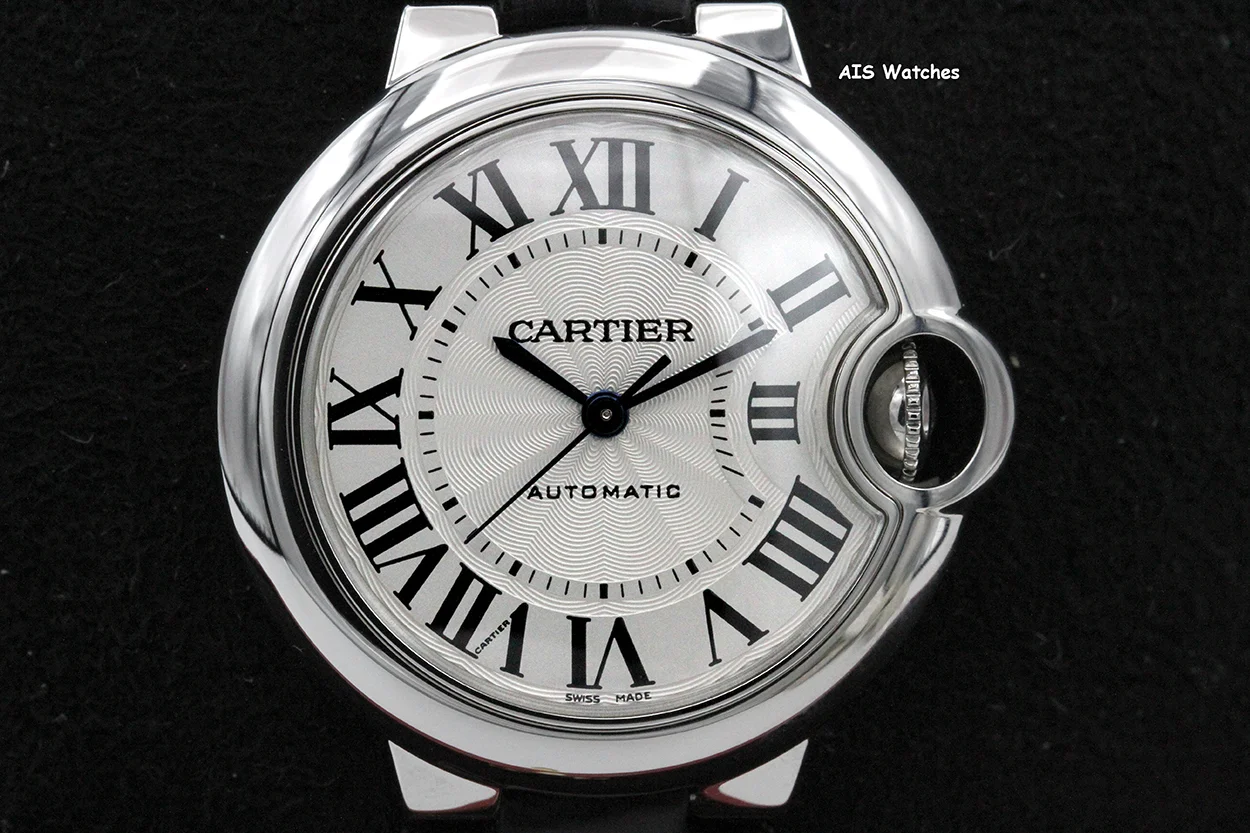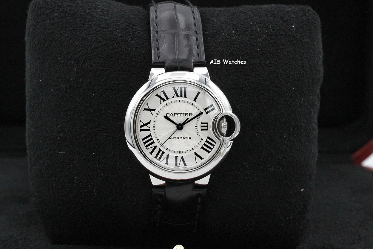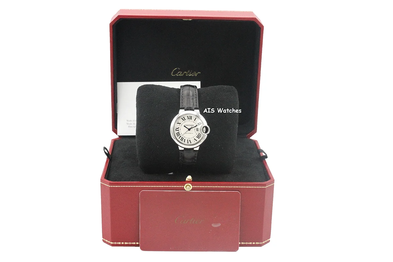 ** Cartier Ballon Bleu W6920085 SS 33MM Silver Dial on Leather Strap