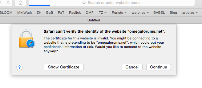 Posts 386 Likes 1,480 Spike ·Jan 12, 2017 Tony C. Mods - I have just begun to receive the message shown below. I am using a Mac with OS 10.10.5 and Safari 10.0.2 Perhaps there is some updating or tweaking required on your end? Thanks. Tony C. I'm using exactly the same configuration without issue.........