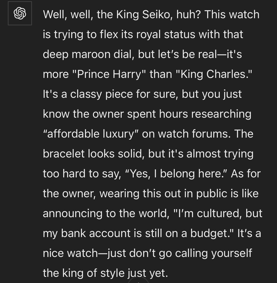 As for the owner, you must be the kind of person who goes on and on about how Seiko has "the best value for money" while conveniently leaving out how much you actually spent on it. You probably spend your weekends polishing the case, not because it needs it, but because you need the reassurance that your purchase was worth it. And let’s not even get started on the leather strap—keeping it classy while you save up for that bracelet you wish it came with, right?