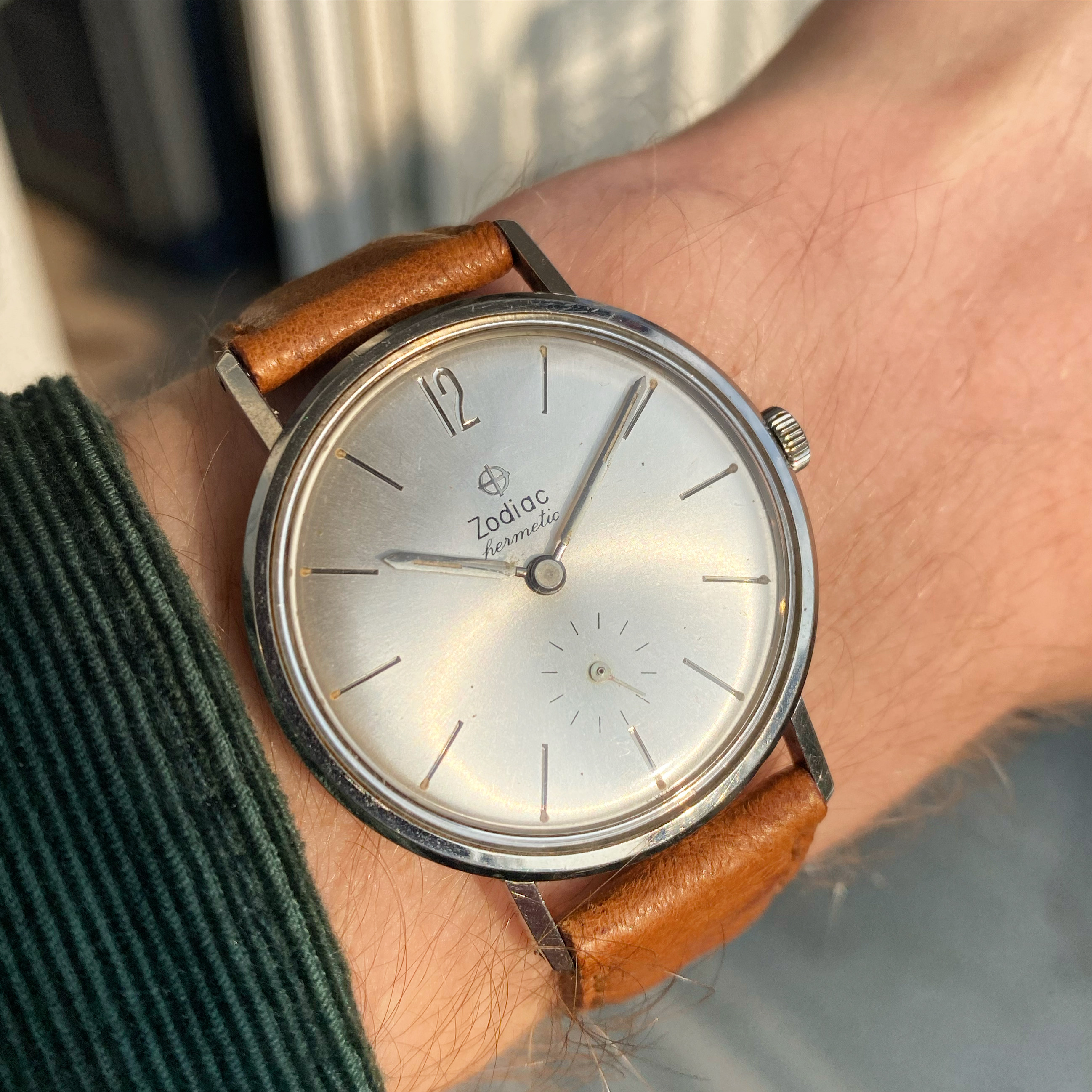 This Zodiac is pretty fun too. It’s super flat, has a lovely Peseux 330 movement and the dial design is very clean with its 12 as the only numerals on it. It also has a signed crown as a bonus.