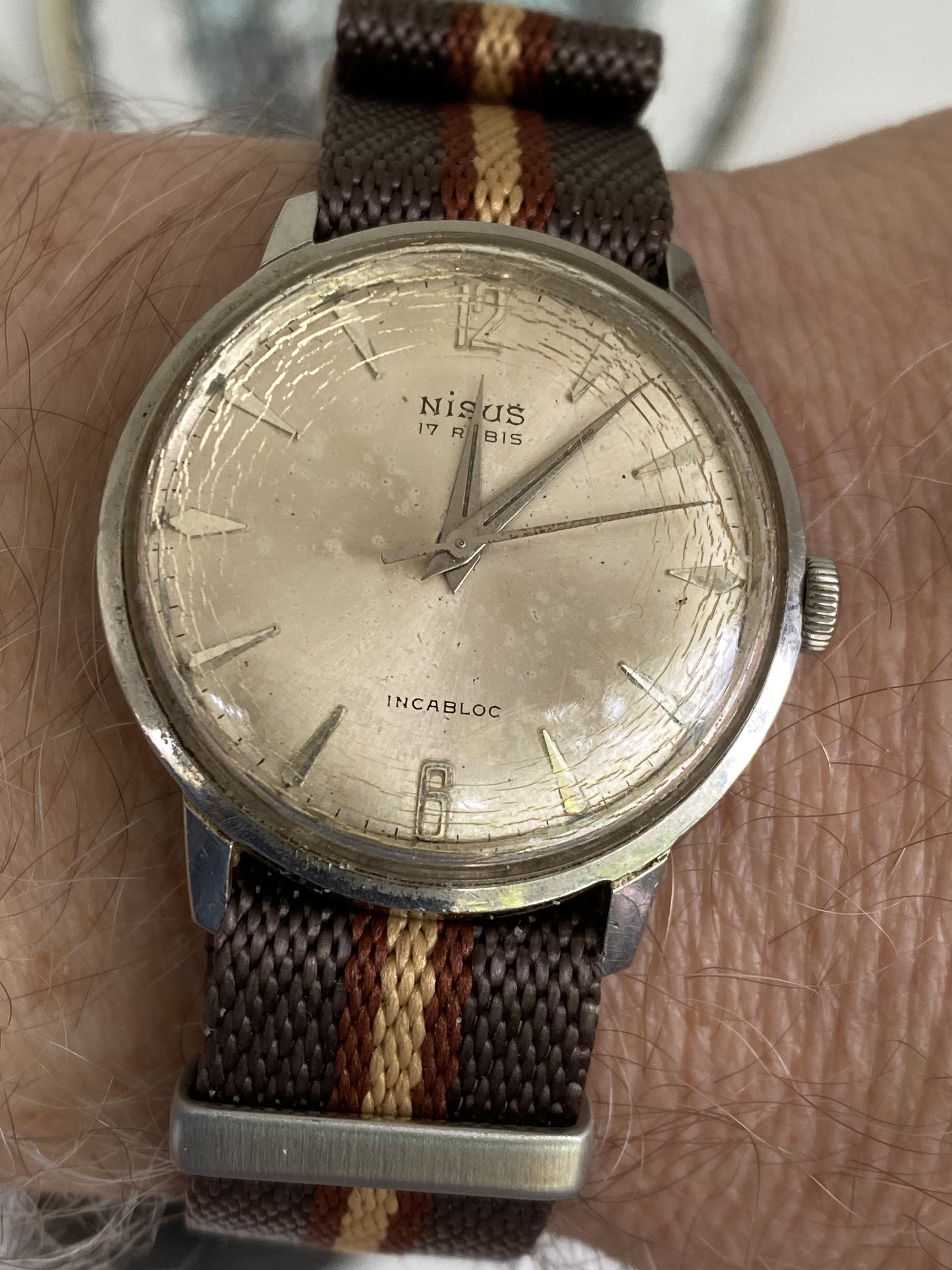 Here's my contender. Look beyond the heavily-crazed crystal (which I'll replace when/if I ever get it serviced). It's what was called a "Monet" in the movie Clueless: looks better at a distance. Found in a box of watch tools and parts that were gifted to me, with a really comfortable Nato added that cost $6.95. Runs perfectly!