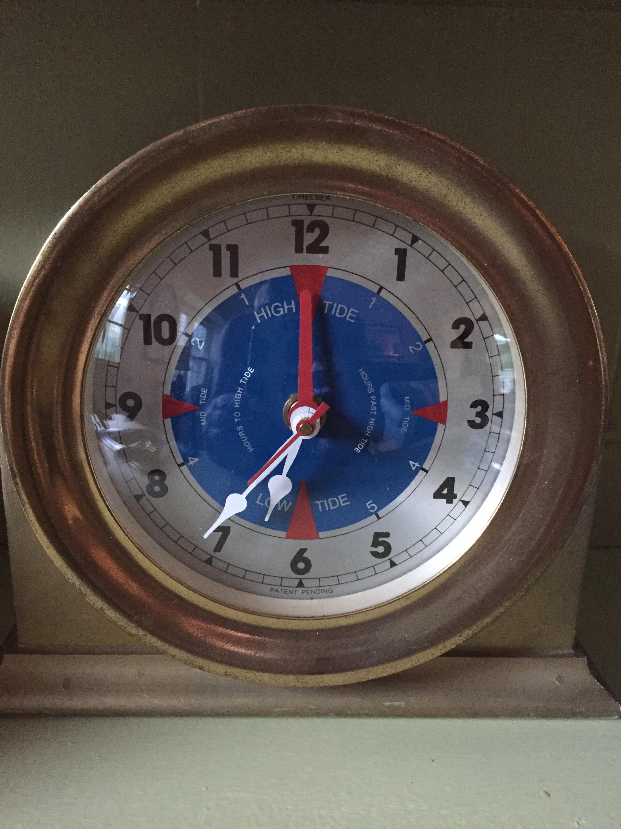 About 3 weeks ago I found one of these Chelsea Ship's Tide clocks at an estate sale on Cape Cod. I had never seen one before-although I have seen many other Chelsea ship's clocks. My watch man and a clock expert I know have advised me to avoid buying any wind up Chelsea clocks that are not working. They said these clocks are very difficult to work on. This clock was not working, but I had to buy it and I would have been satisfied putting it on a shelf and having it be accurate only 2 times a day, if it could not be repaired. It was that cool looking