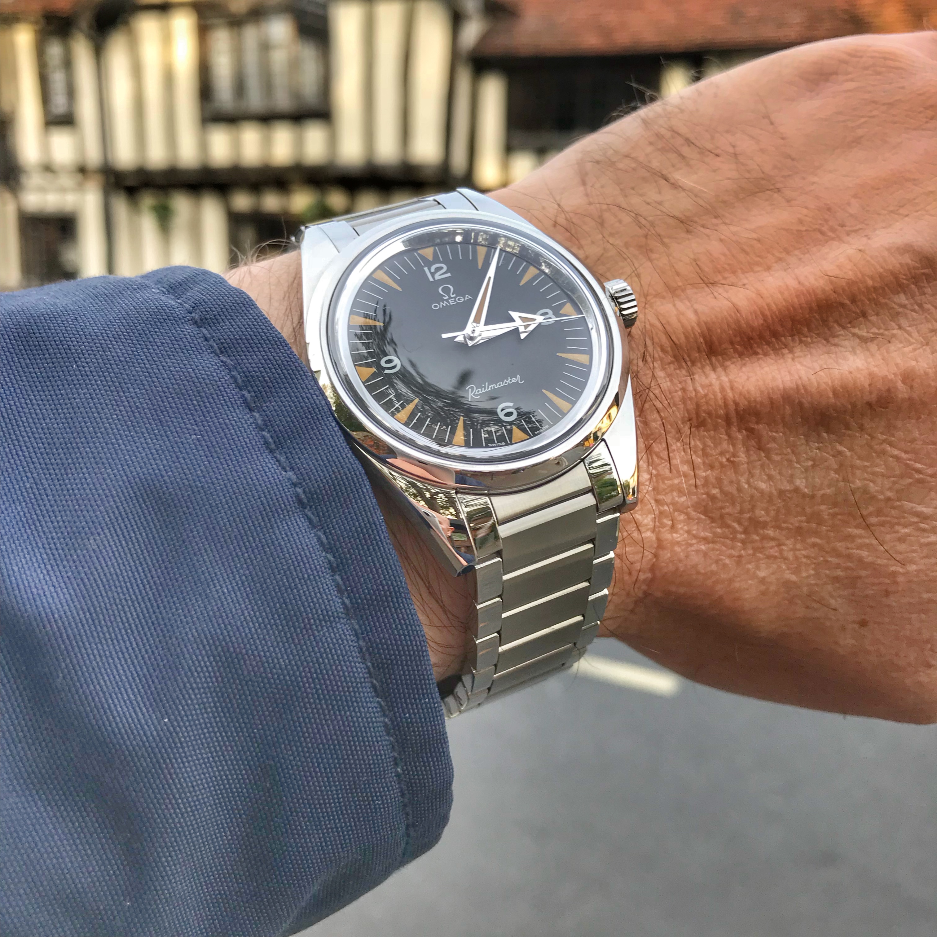 It’s kind of odd that the Railmaster has spent so much time on the bracelet as I find it looks best on a NATO strap and not even the official Omega British Khaki (sand colour) one at that,