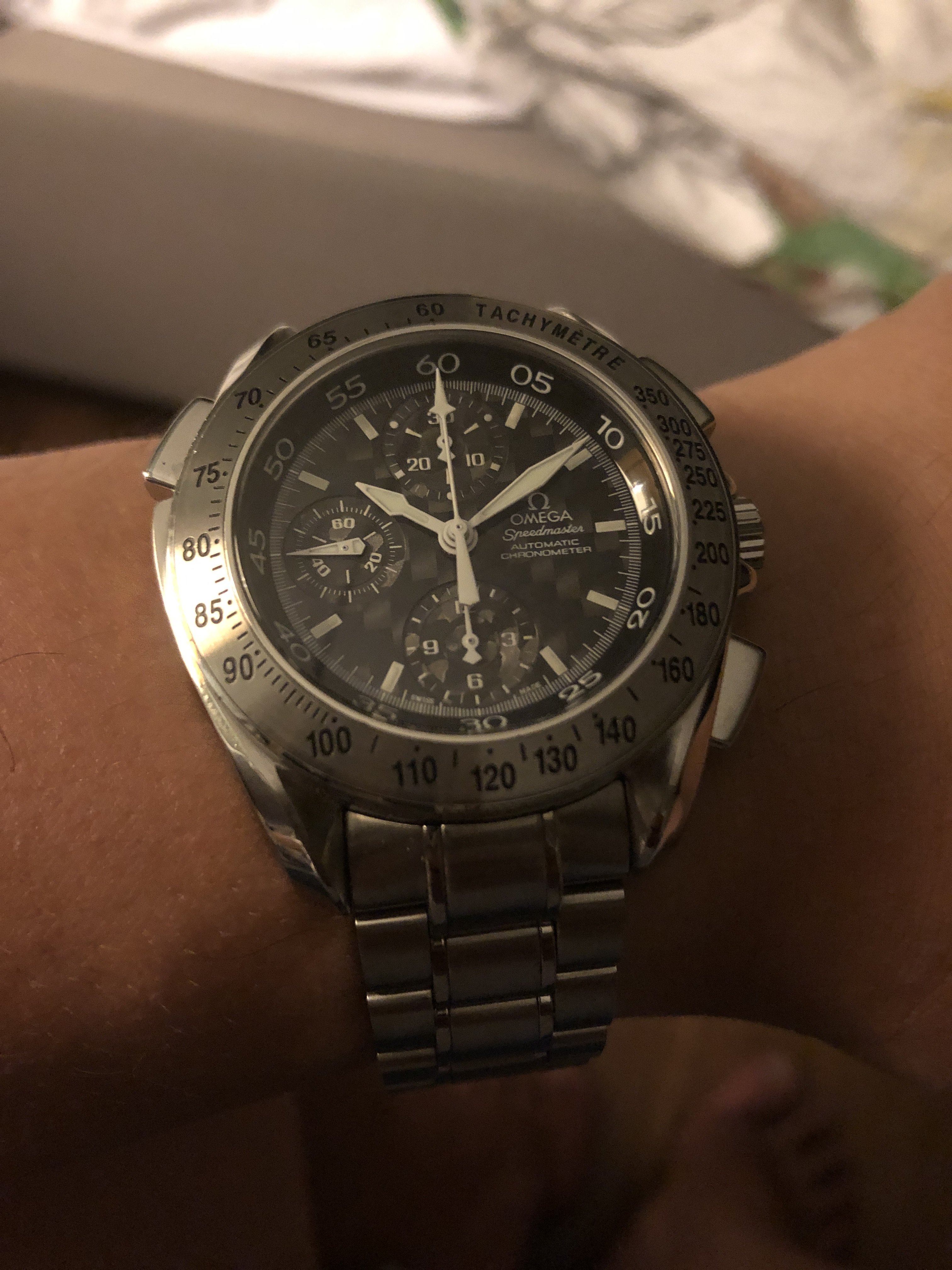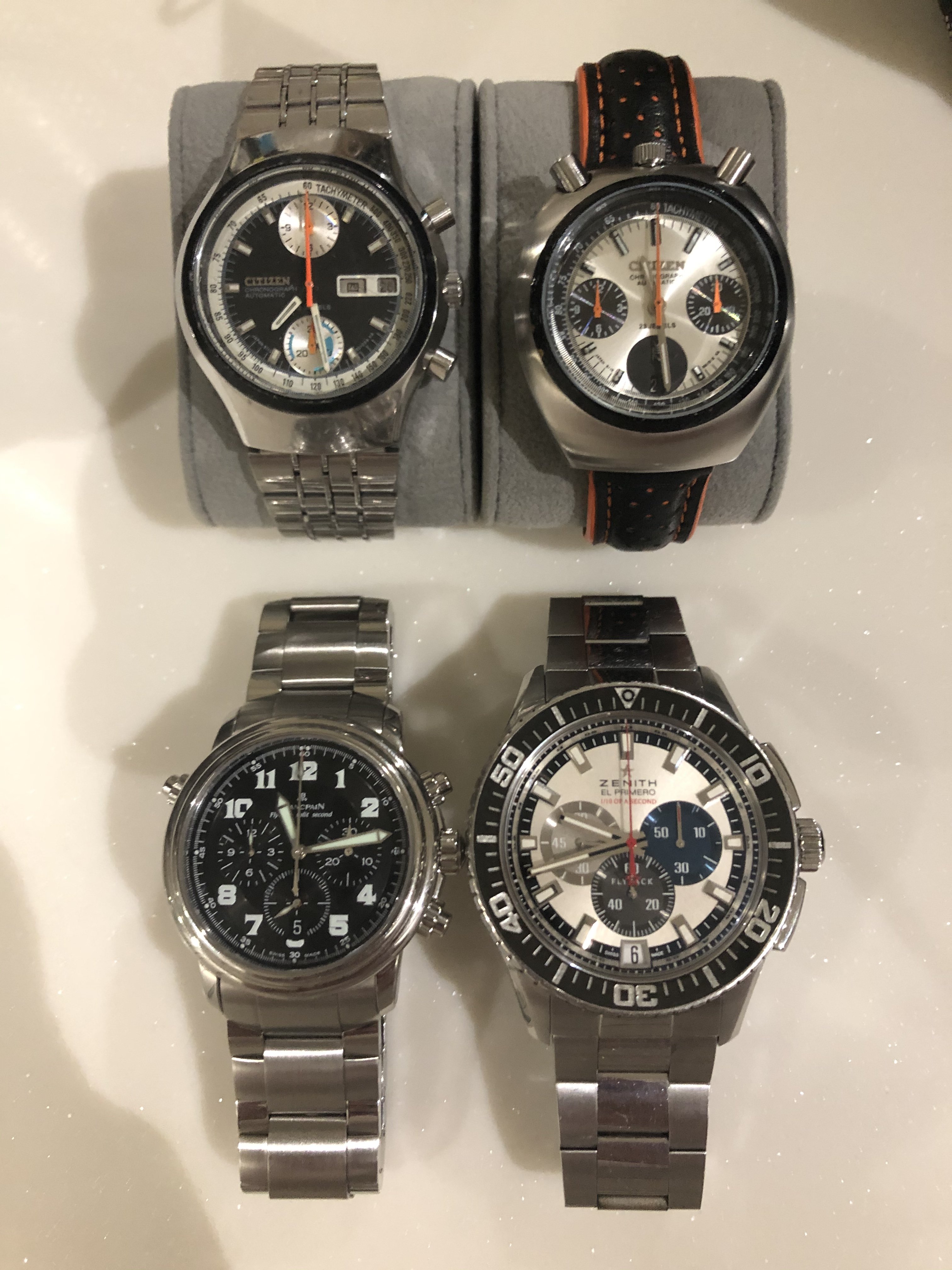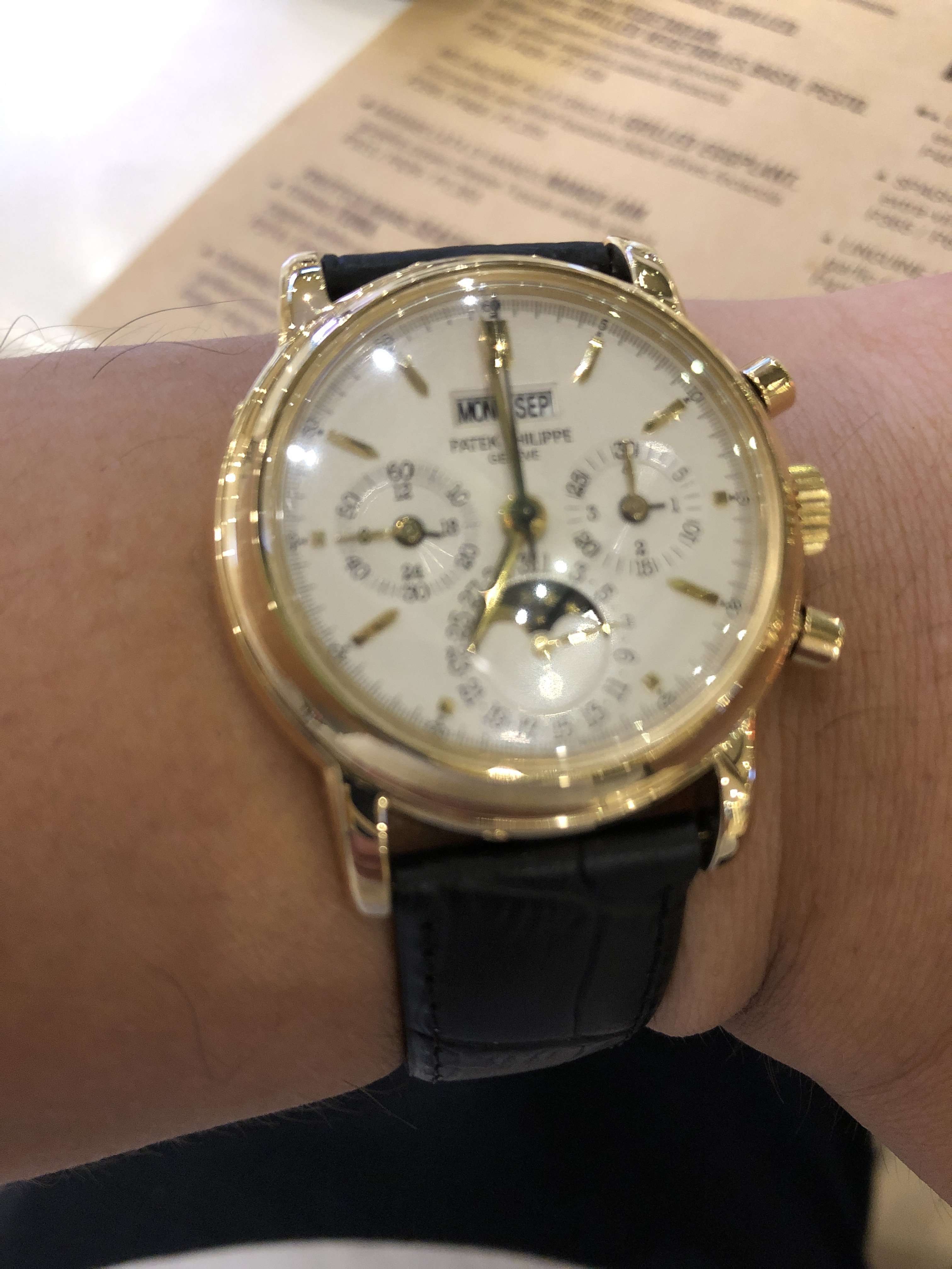 Two individual timed chronographs at the bottom subdials with a third register acting as a split-second differential at the upper subdial. It’s a monophsher: The first push starts the two bottom subdials where they begin timing. The second push stops the dial on the lower left and begins the split-recording dial on the upper subdial. The third push stops the second time (lower right) and the split time (upper). The fourth and final push brings everything back to zero.