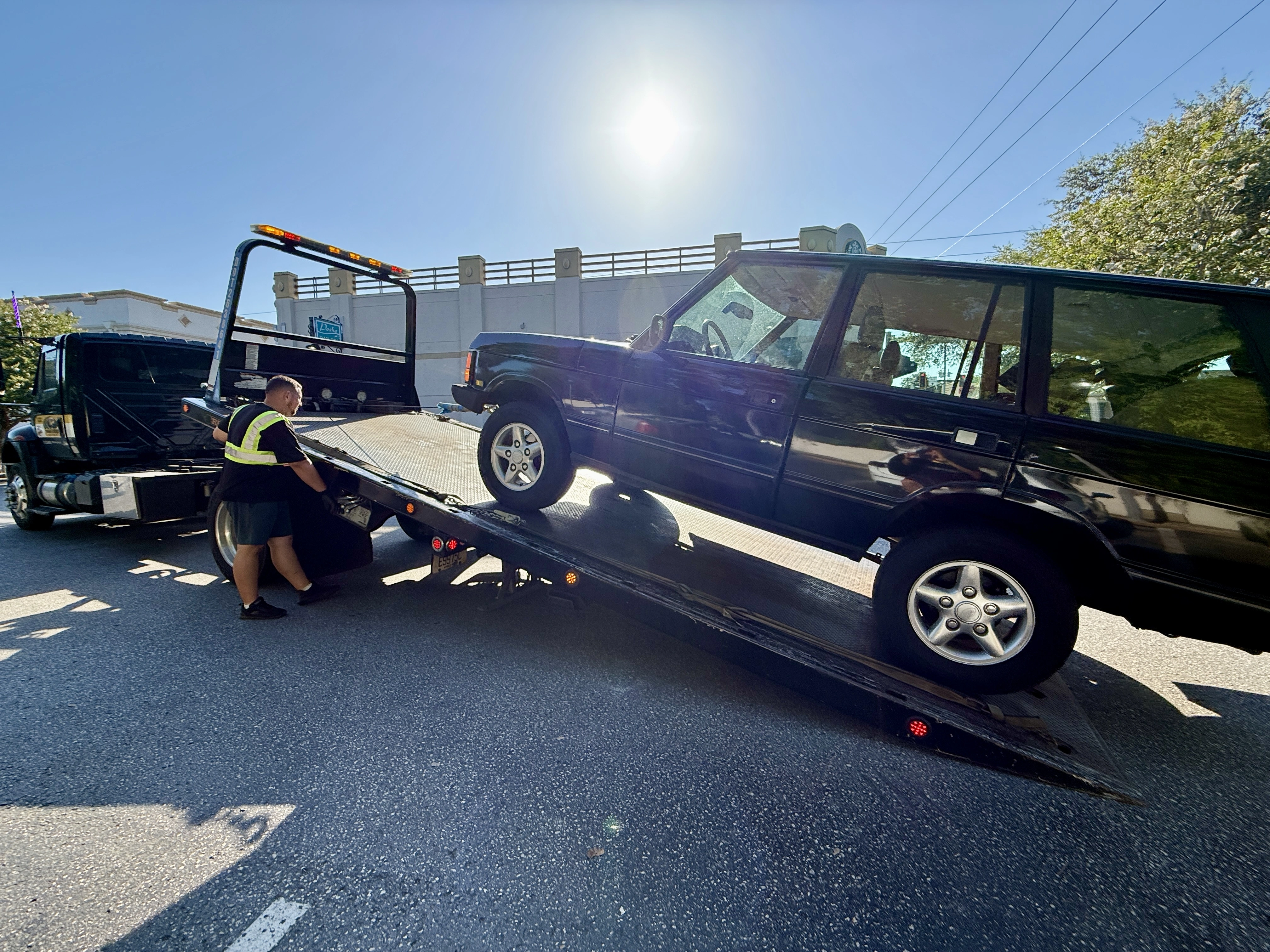 - tow driver gets my mate to drive on 3 wheels up the flatbed, doesn’t even secure it