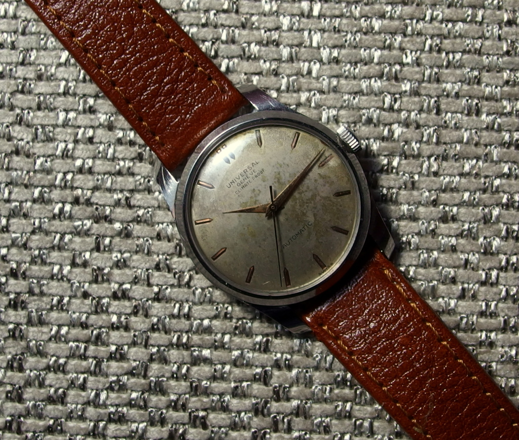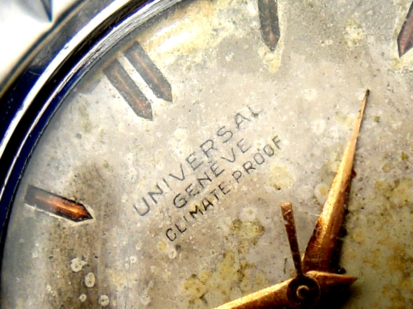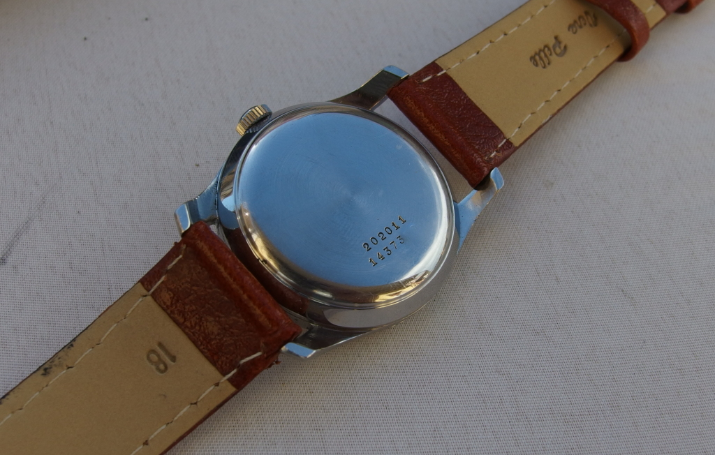 I'm aware of the Climate Proof chronograph models, but this is the first one that I've seen in a time-only configuration. Nothing notable about the case in terms of its "climate protection features." That is, it appears to be a standard (non-screw down) crown and snap case back--which, with the condition of its dial--certainly appears to be a bit of a misnomer.