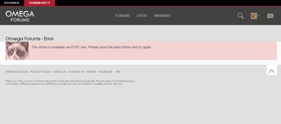 ·This has happened a few times when trying to edit posts in the "Private Watch Sales" section. I'm sure it has nothing to do with the sub forum, but mostly with the fact that these are really longs posts and for some reason CloudFlare is triggering an "are you human" verification. The verification usually succeeds without any user prompt, but it follows with another error and I have to start over with the edit.