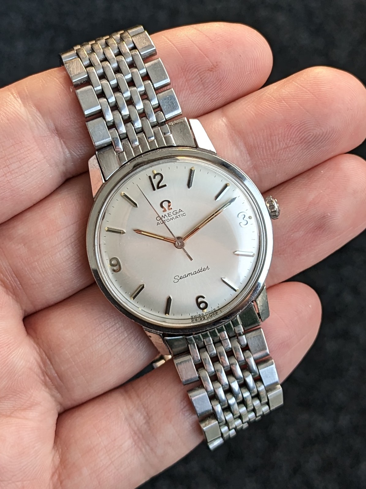 I just recently bought my first automatic Omega! Nothing special, just a Seamaster circa 1965, reference 165.002 with a caliber 552. Somehow I have managed to avoid purchasing a 'true' Omega automatic watch until now. I own a few vintage Omegas with manual winding calibers, a Gen猫ve with automatic 1481 (Tissot movement) and a Constellation with a bumper automatic 354. So it was time to beef up my collection with a 5xx series watch!