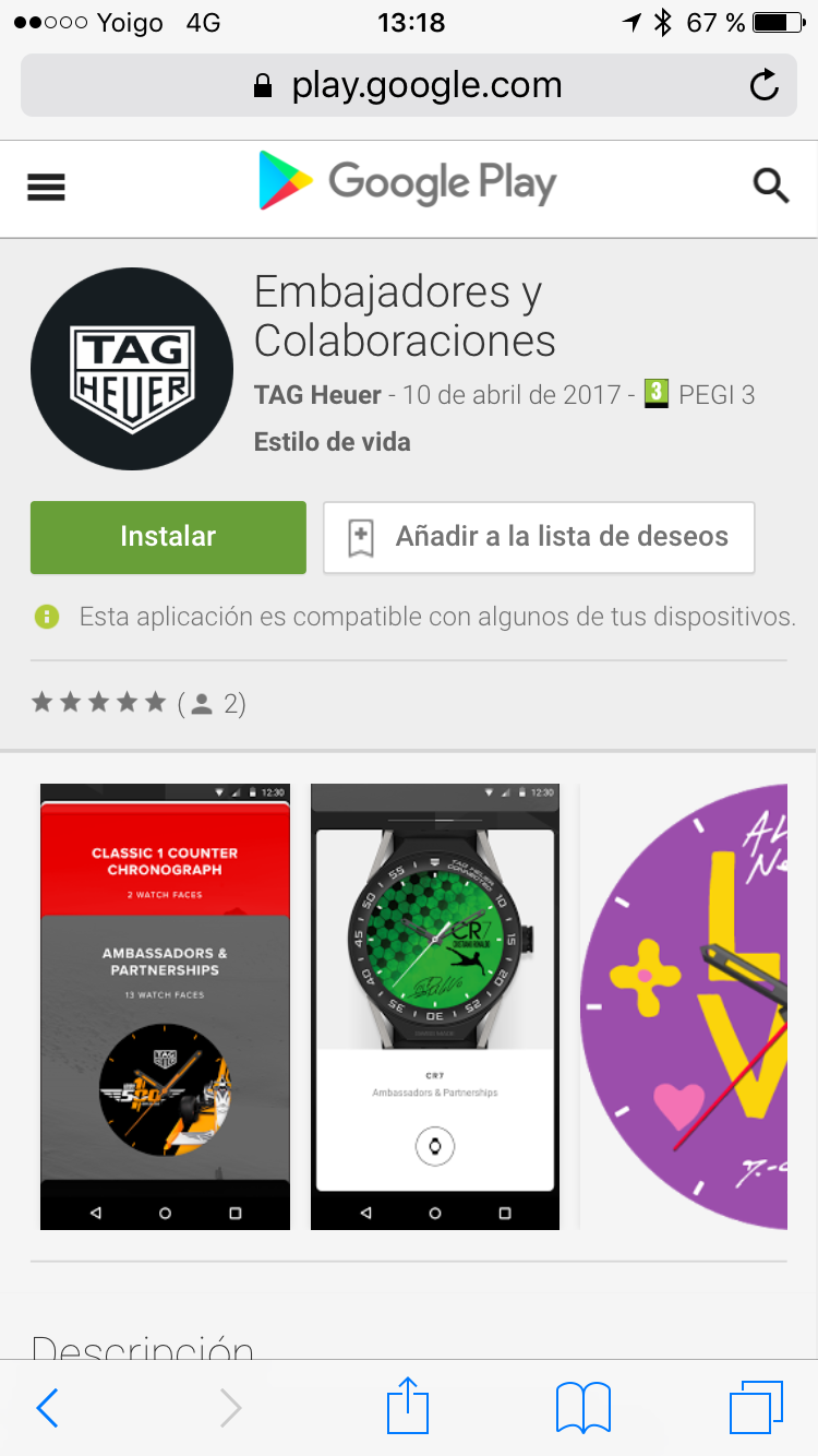 Also using the above link and my iMac on the google play store I could load the above app onto the watch and get the TAG ambassador watch faces as well. Thanks for the information.