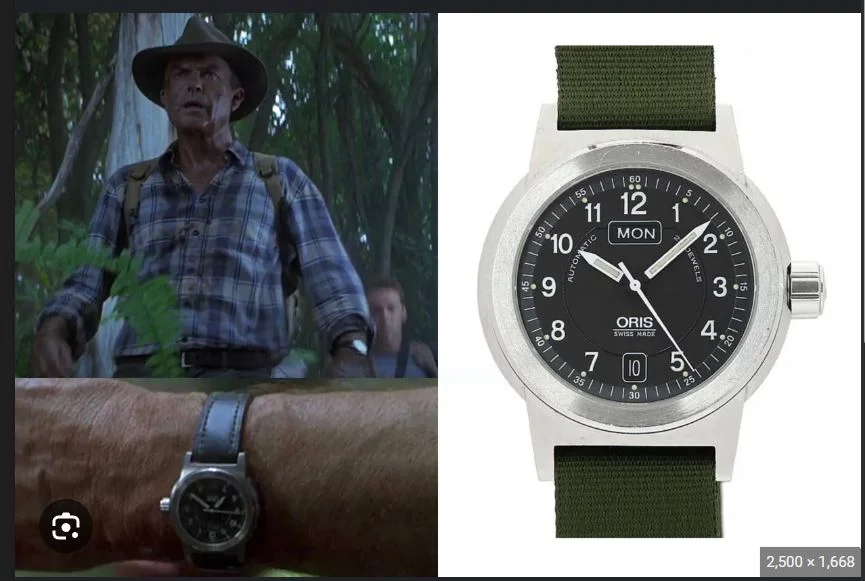 ·It's been years since I have acquired a new watch. After seeing a shot of an Oris that Sam Neil has worn for Jurassic Park III, I fell in love with it. I have read analysis of the video/images that state he is wearing an Oris 7500 BC3 (big crown). Reading the specs for that watch, it has a 40mm diameter, but looking at how much real estate the case takes up on Sam's wrist, it looks more like 34mm or so (unless he has one of the largest wrists ever).