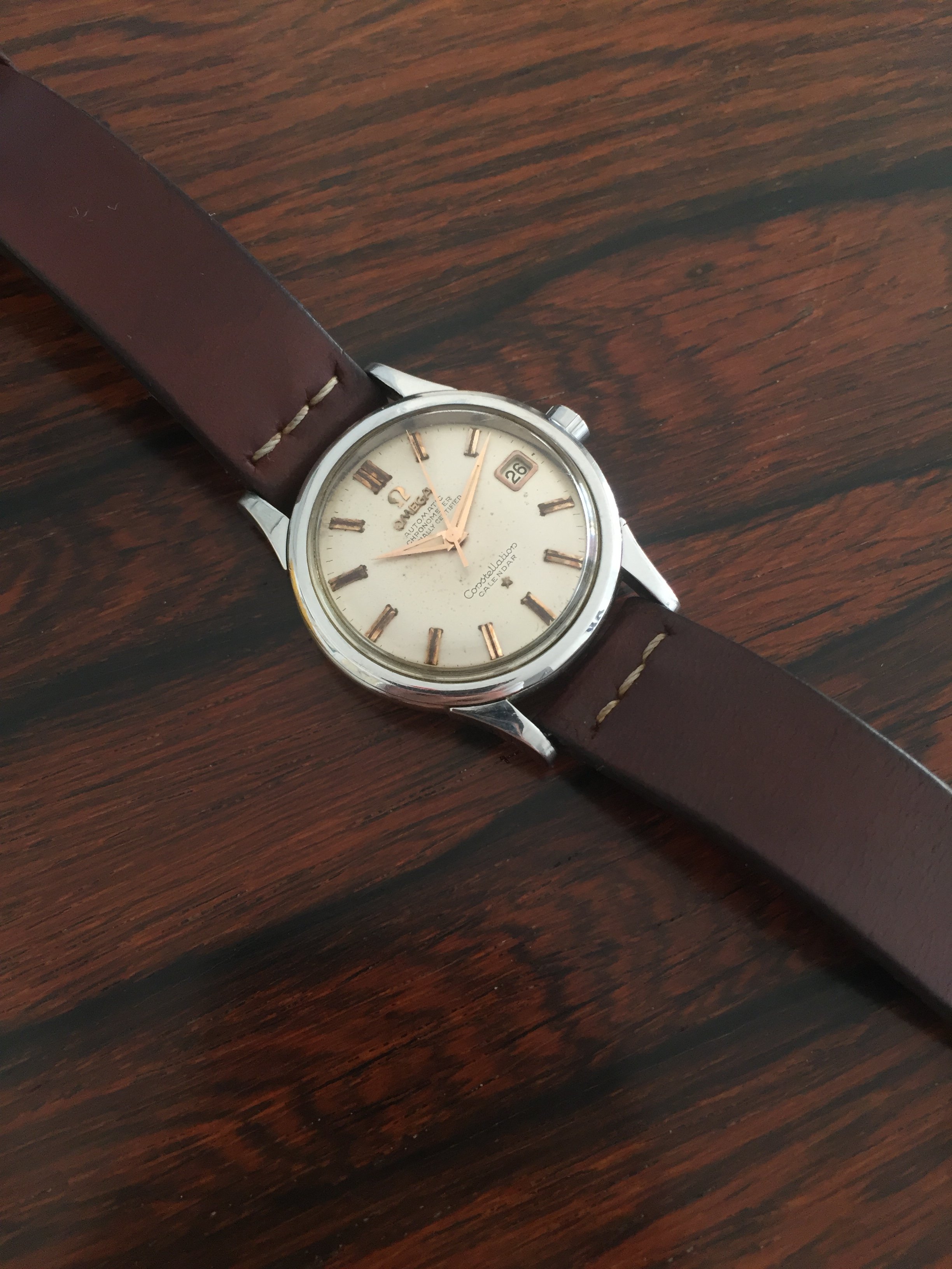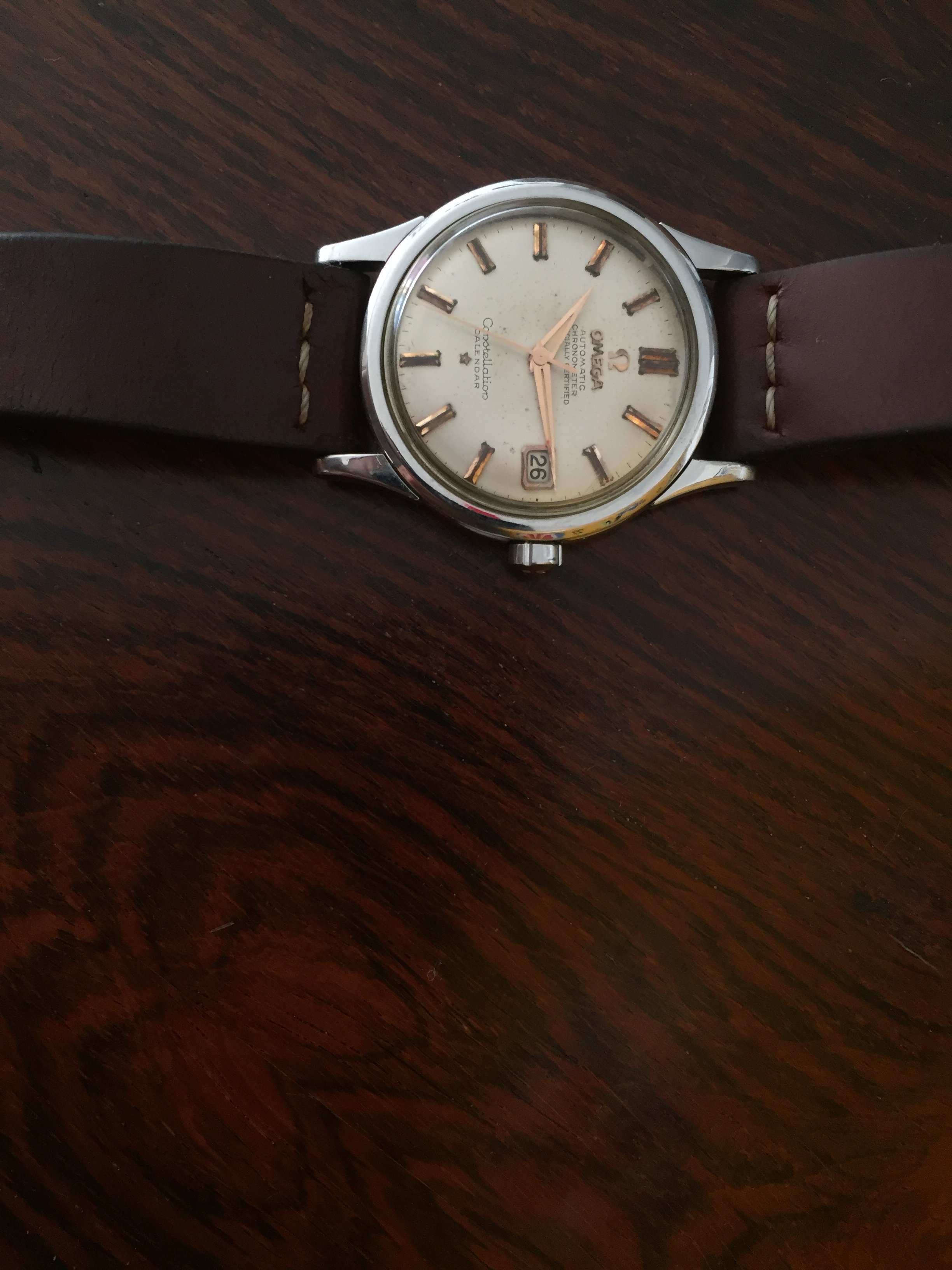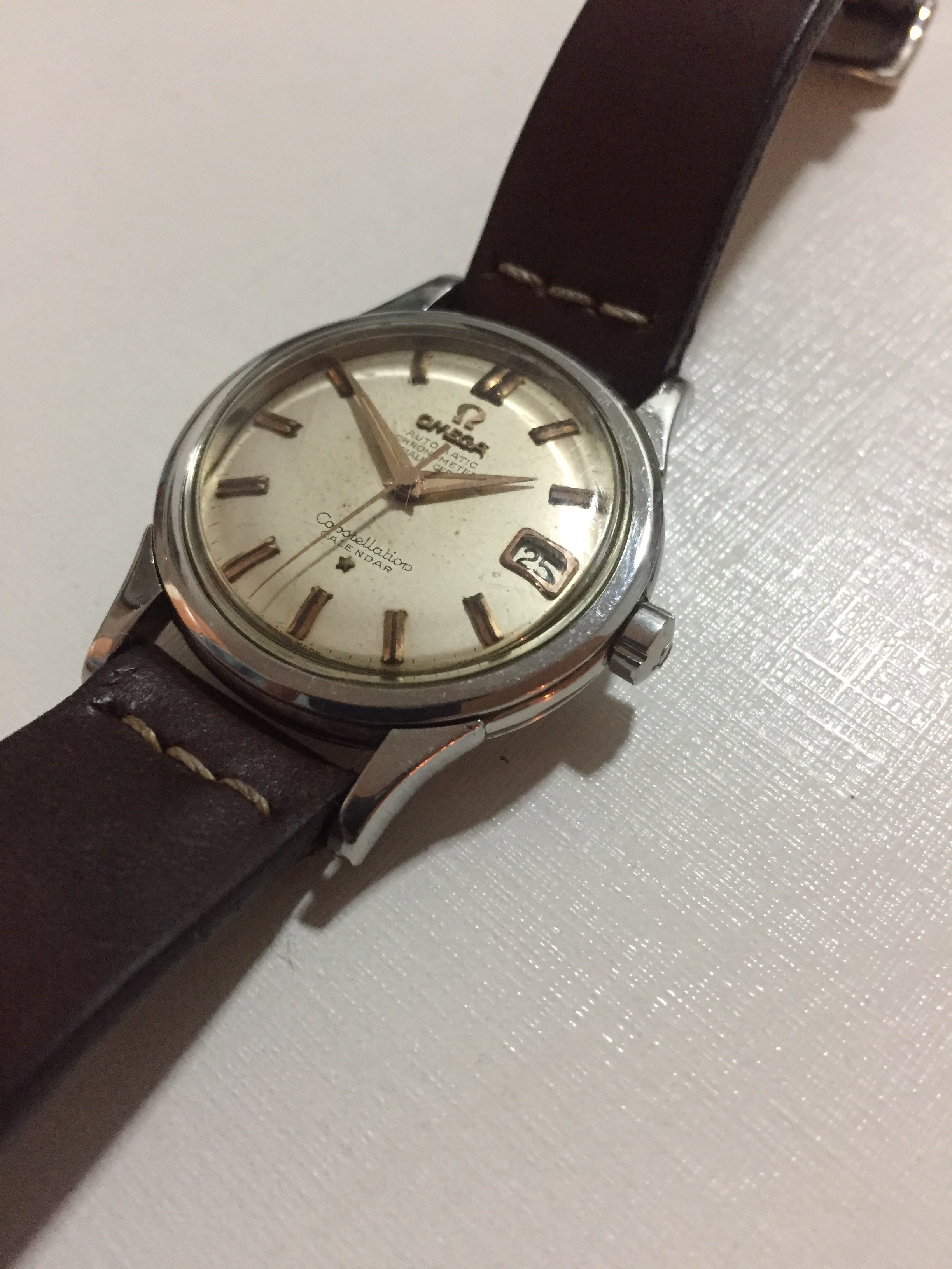 Crystal: original with the Omega logo. It has a couple of scratches and could definitely spend a minute on the buffing weel.
