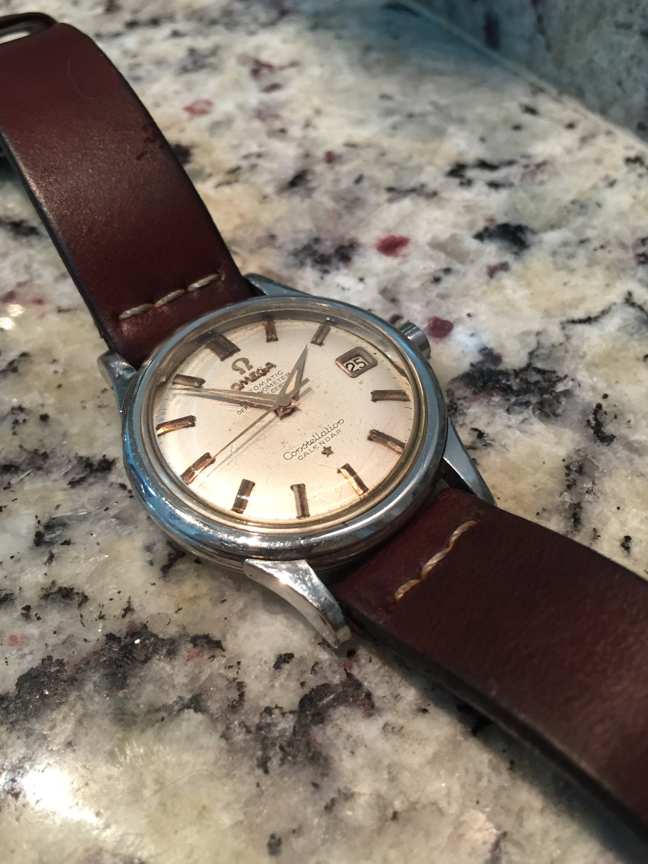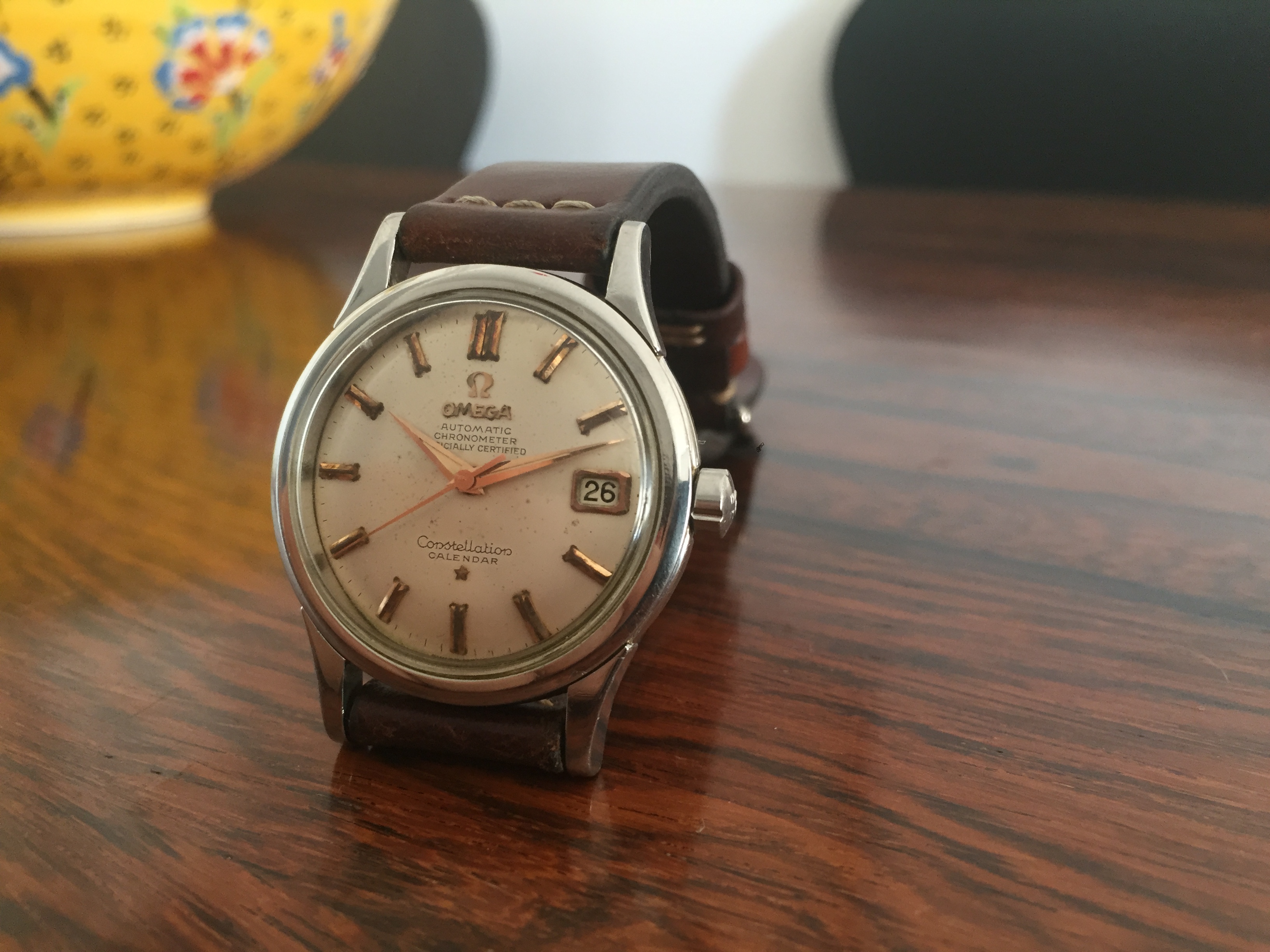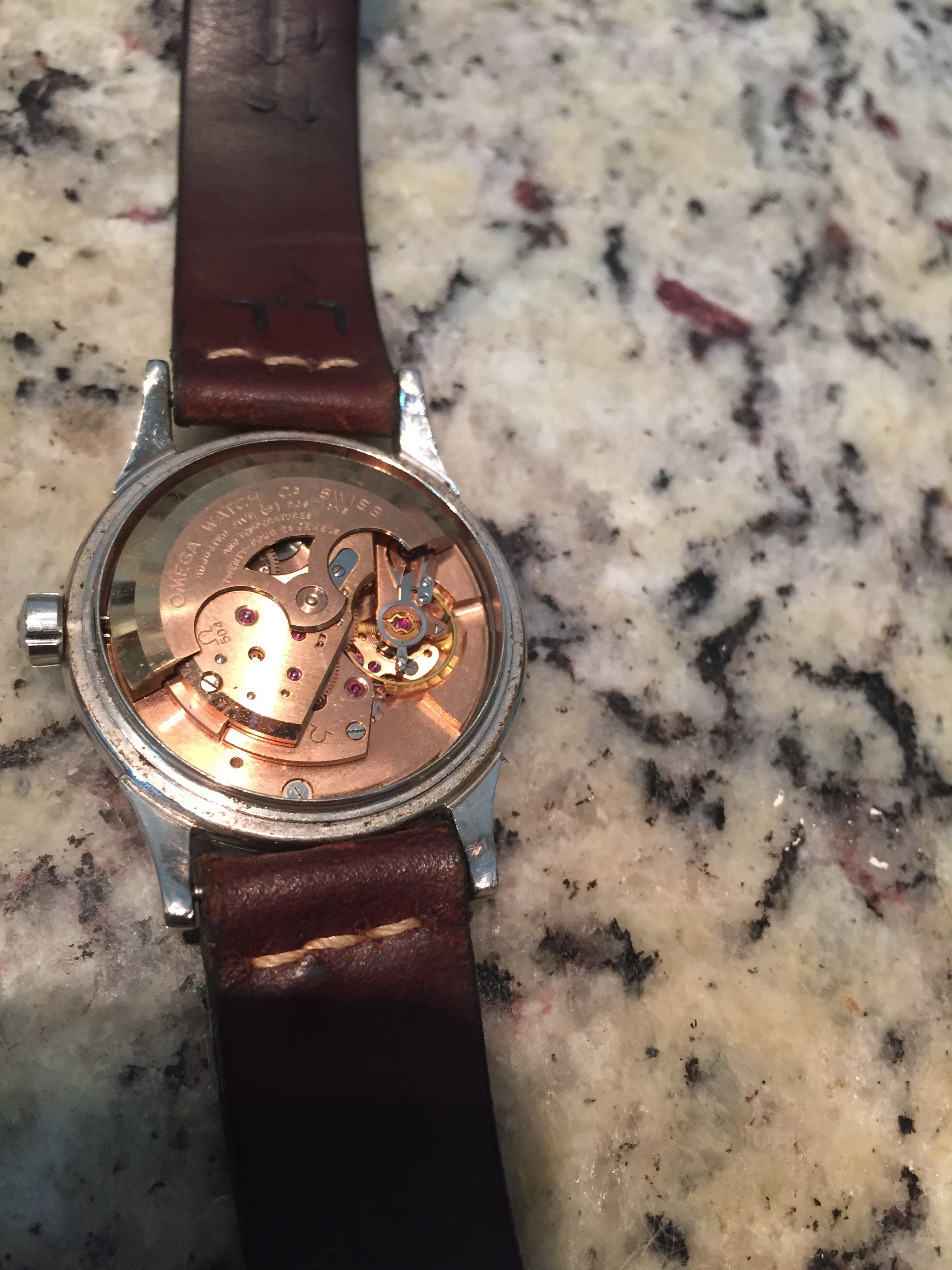 Crystal: original with the Omega logo. It has a couple of scratches and could definitely spend a minute on the buffing weel.