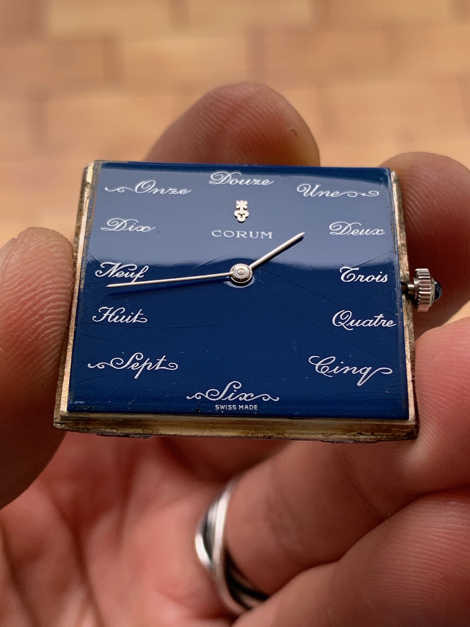 The dial was a bit damaged, so I changed it with an awesome dark grey one..