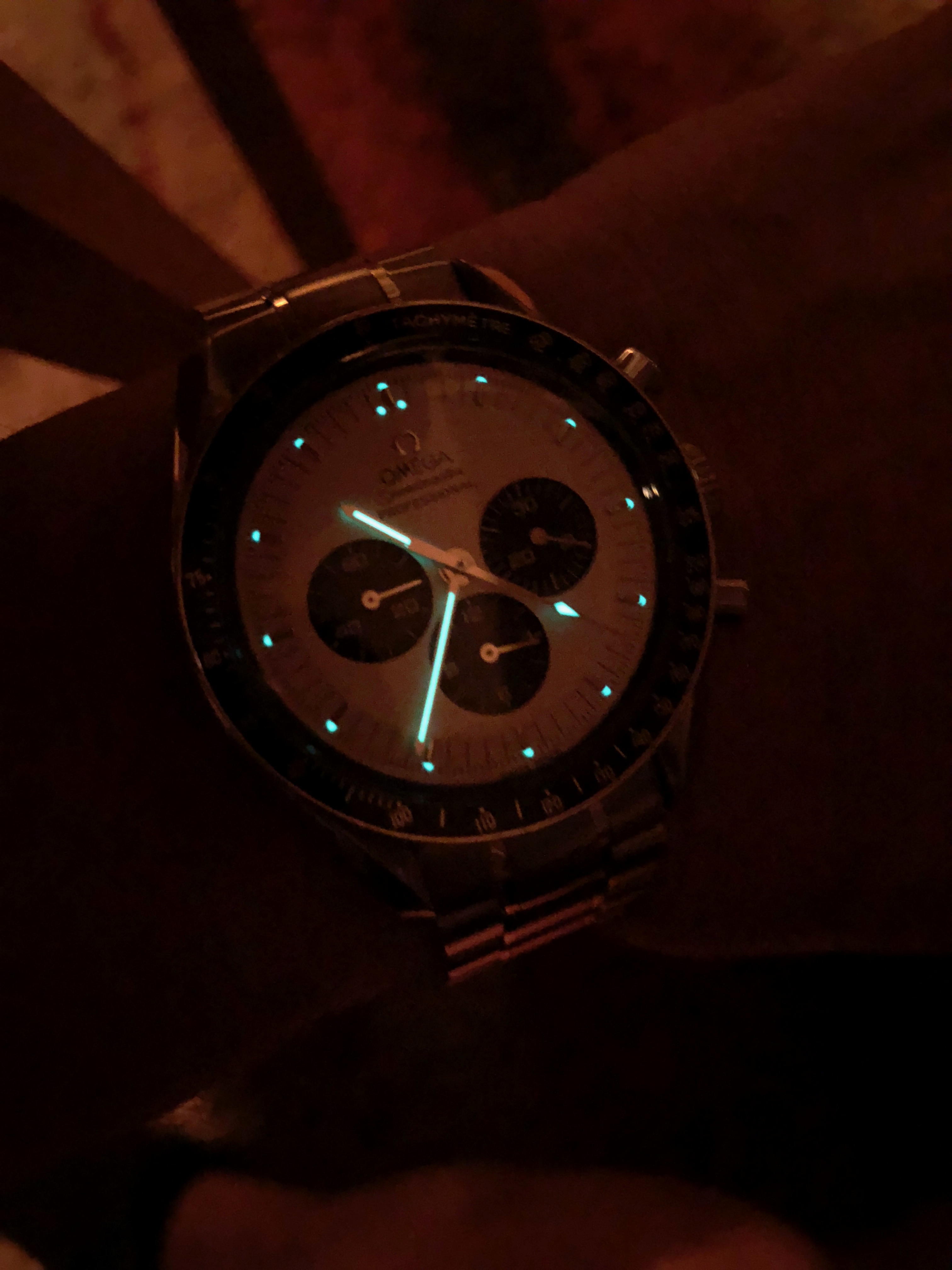 Posts 6,700 Likes 12,318 SpeedyPhill ·Apr 27, 2018 Answer to my question about lumed crowns: It looks like, so far 2 versions came out with lumed crowns: 2014 Grey Side Of the Moon and the 2018 50 years Apollo 8 Speedmaster