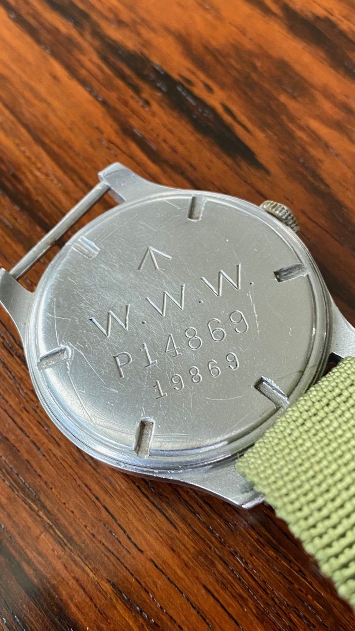 With the double marked case back, second number means it was returned for repair during the war, the crown isn't original and possibly replaced in the war.