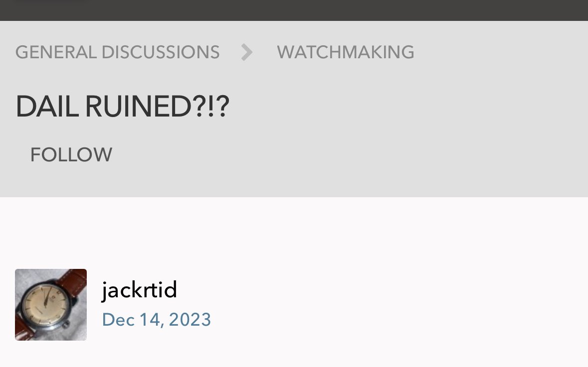 I have however had a major mishap on the dial. In an attempt to gently clean some specs of the dial (I KNOW IT WAS A BAD IDEA AND I AM PAYING THE CONSEQUENCES) I used a lightly damp cotton bud and immediately, immediately upon the water touching the dial, a brown material dissolved into the water and some sort of paint, or coating was severely ruined. In an attempt to make the dial more uniform, I decided to cut my losses and continue to remove the brown layer. This previously showed the patina of the lovely 50s dial.