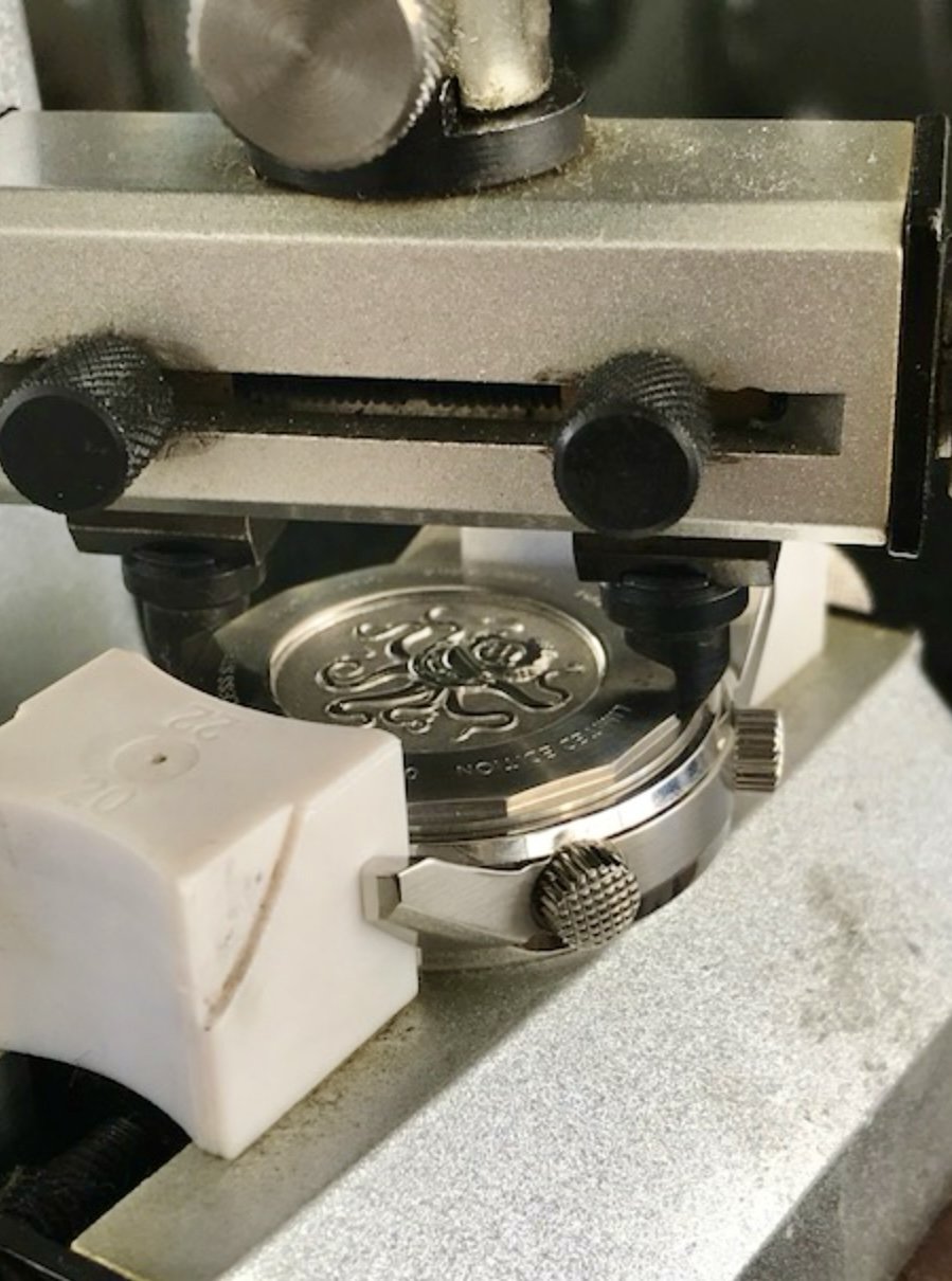 It looks to be a screw case back but what tool to use? He could try a sticky ball I guess. It’s an LE so he won’t want to scratch it. As he is a novice another option is to try DH or a UK service company but he does not have anything locally. Any help appreciated. He is new into watches and OF helped his selections so I want to keep the momentum for him. Thanks.