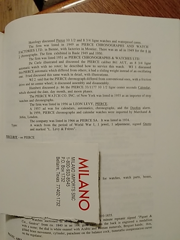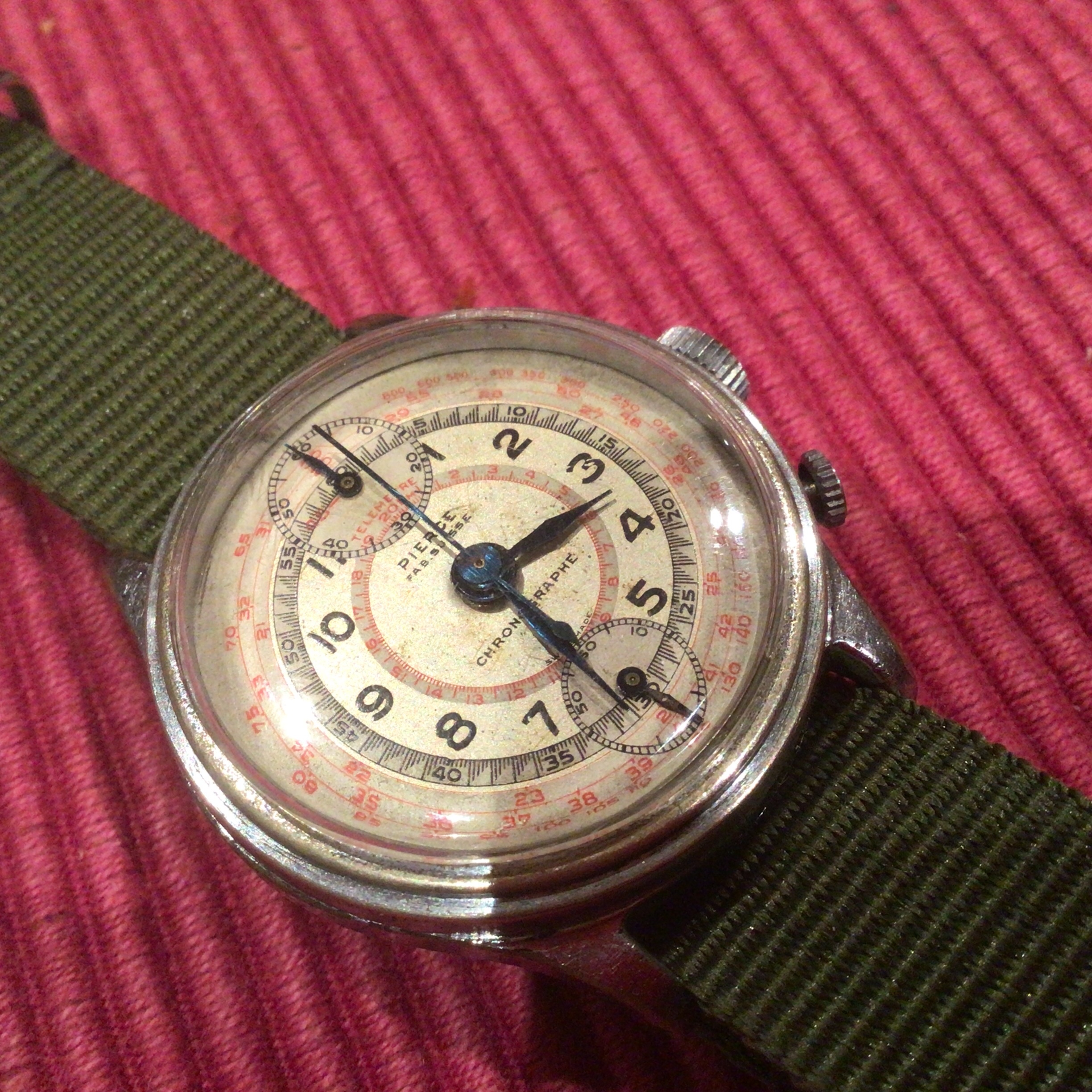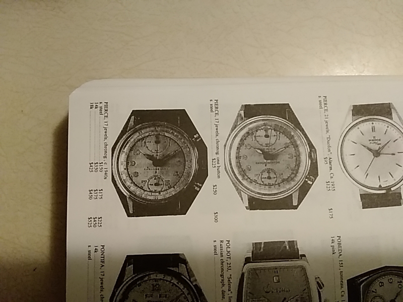 ·OF members, a question posed by my recent acquisition of a Pierce chronograph which I believe to be a mid 1940’s model rather than the c.1950 listed in its advertisement. The tachymetre runs only to ‘800’ and thus the main question, does the tachymetre and/or sub-dials, provide accurate guidance as to a watch’s age in the absence of reliable company data?