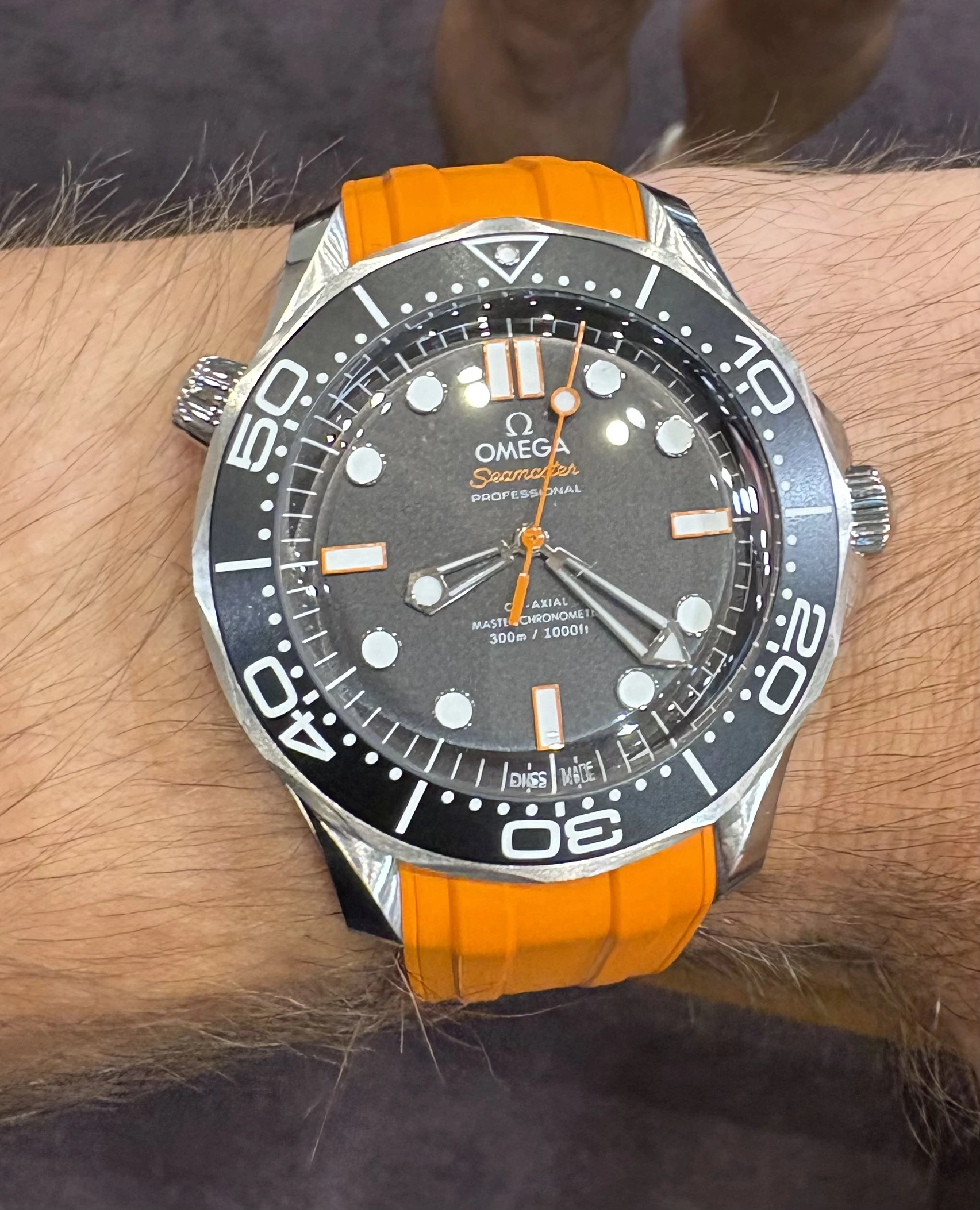 Oddly the smaller dial (due to the larger bezel) makes the 42mm Seamaster visually look smaller. Even though I know the Speedy wears like a 40 (40mm below my preferred size) and the Speedy a better L2L (50mm my max as per my old Pam 560).