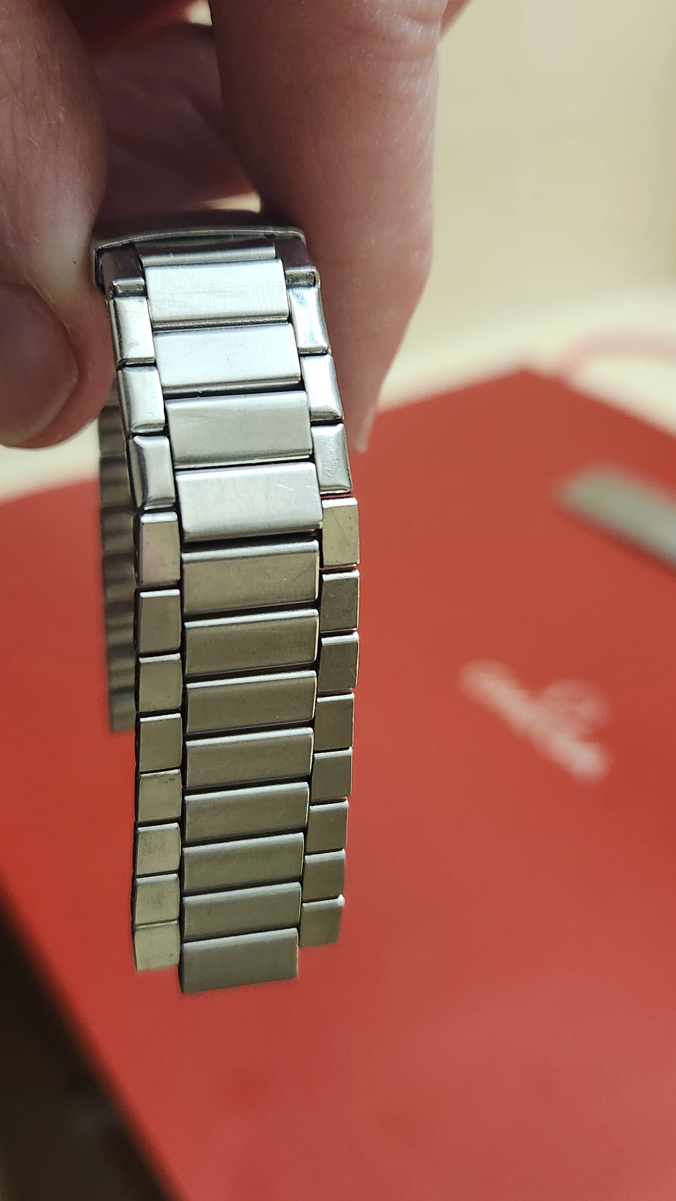 Yes, this is an odd-ball bracelet but it looks great and functions well when paired with period correct Rancheros, Seamasters, Constellations, Speedmaster Reduced, or even your Trilogy models when using the appropriate end pieces. Great for a spare, or as your first Flat-link bracelet and the priced has been discounted appropriately.