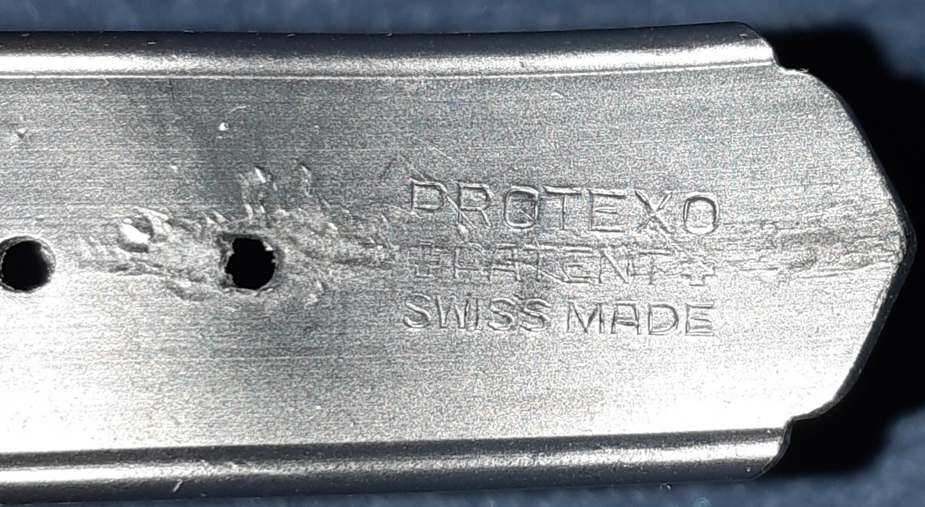I did not find the number, but only the inscription "PROTEXO + PATENT + SWISS MADE". What would that mean? Could someone explain the inscription on the buckle?